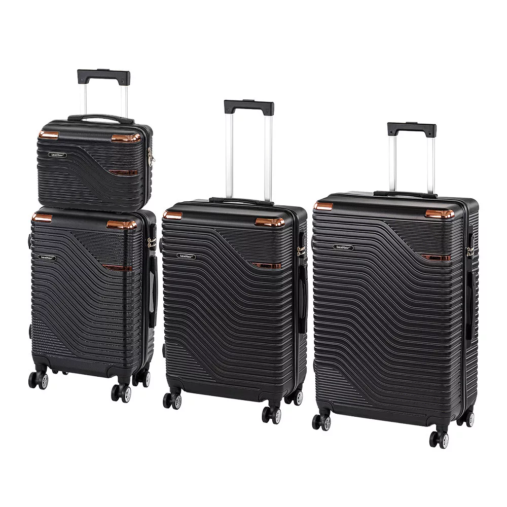 Conținut și dimensiuni: Valiza manuală: 28 × 36 × 16 cm | 11 litri | 0,77 kg Valiza cabină: 55 × 40 × 20 cm | 38 litri | 2,6 kg Valiza medie: 68 × 45 × 25 cm | 60 litri | 2,65 kg Valiza mare: 76 × 50 × 29 cm | 100 litri | 3,3 kg - Material: Plastic ABS ușor, rezistent la zgârieturi
