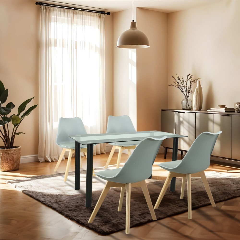 Setul de masă Merlo 4 în 1 este alegerea perfectă pentru sufragerii moderne și elegante. Combinația dintre masa Riona gri și scaunele Silla gri creează un aspect unic și elegant, în timp ce caracterul practic și confortul sunt, de asemenea, considerații importante. Alege un set Merlo pentru a face din sufrageria sau bucătăria ta elementul central al casei tale!