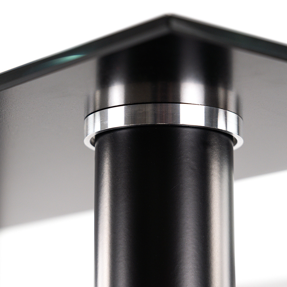 - Blat de masă: sticlă călită cu grosimea de 8 mm în gri fum