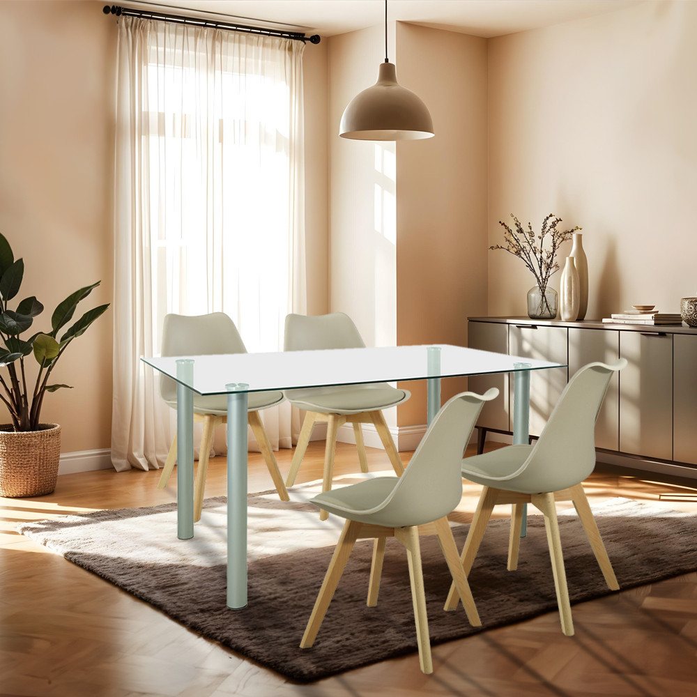 Setul de masă Midori 4 în 1 este alegerea perfectă dacă vă doriți stil modern și confort funcțional în sufrageria sau bucătăria dumneavoastră. Designul sofisticat și materialele de înaltă calitate garantează că acest set își va păstra frumusețea și confortul pe termen lung.