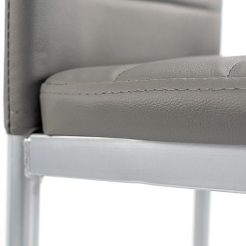 Aspectul elegant al scaunelor din piele textilă și capitonajul moale oferă o experiență plăcută de ședere, în timp ce masa cu blat de sticlă creează un efect aerisit și modern în spațiu.