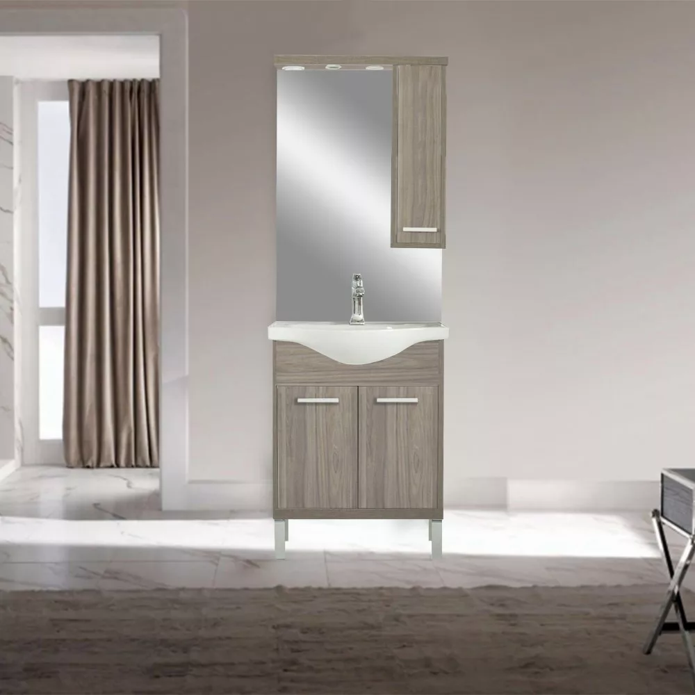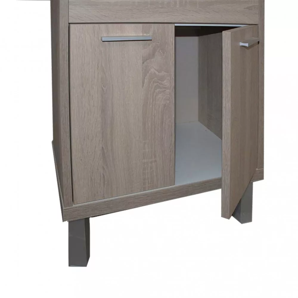 Mobilierul de baie ocupă puțin spațiu, dar are un dulap spațios unde pot încăpea confortabil articole de toaletă pentru baie. Datorită spațiului redus necesar, este potrivit și pentru mobilarea băilor mai mici, de exemplu în apartamentele cu panouri. Produsul este fabricat din plăci de mobilier de înaltă calitate și este prevăzut cu margini asortate în culori . Mobilierul de baie este disponibil cu chiuvetă .