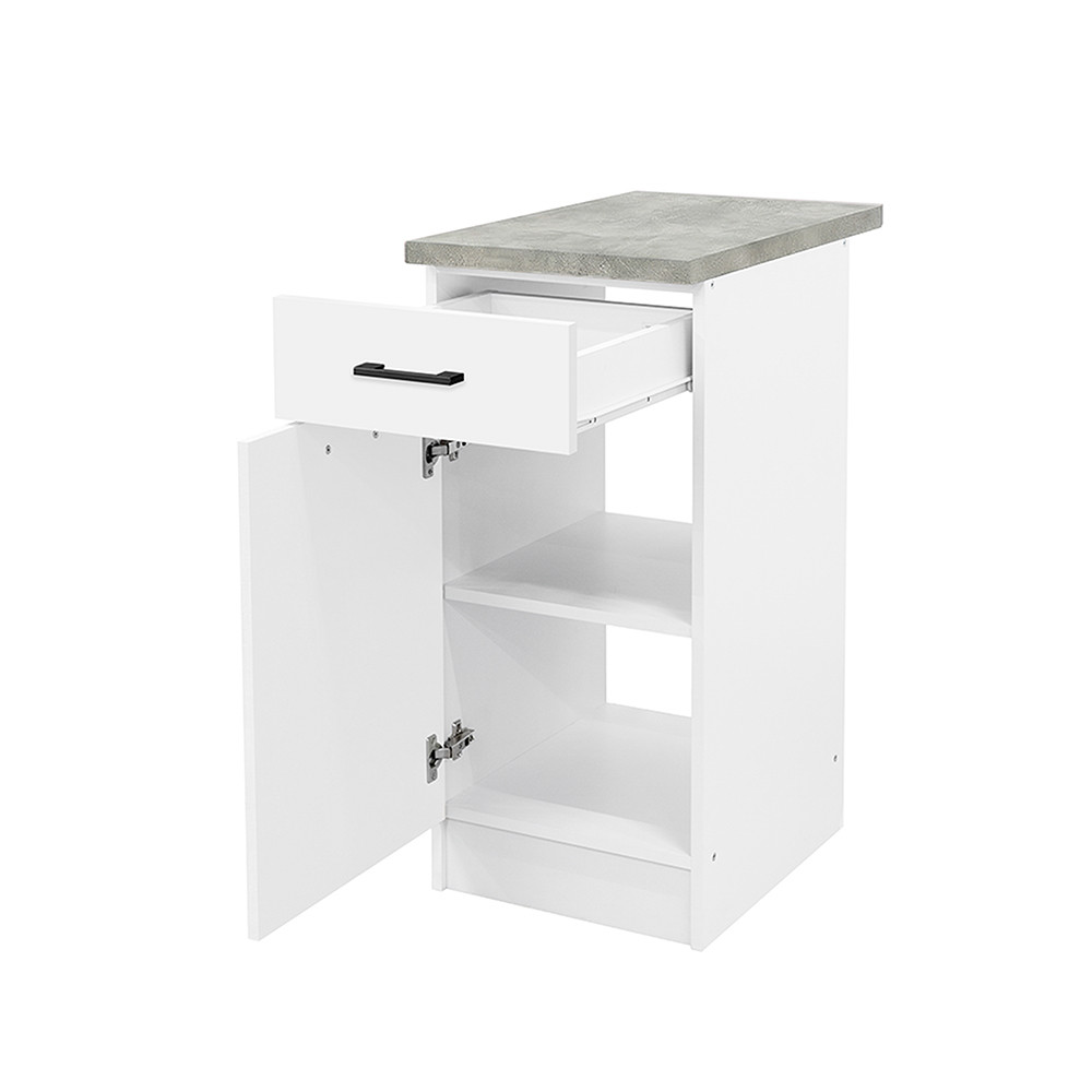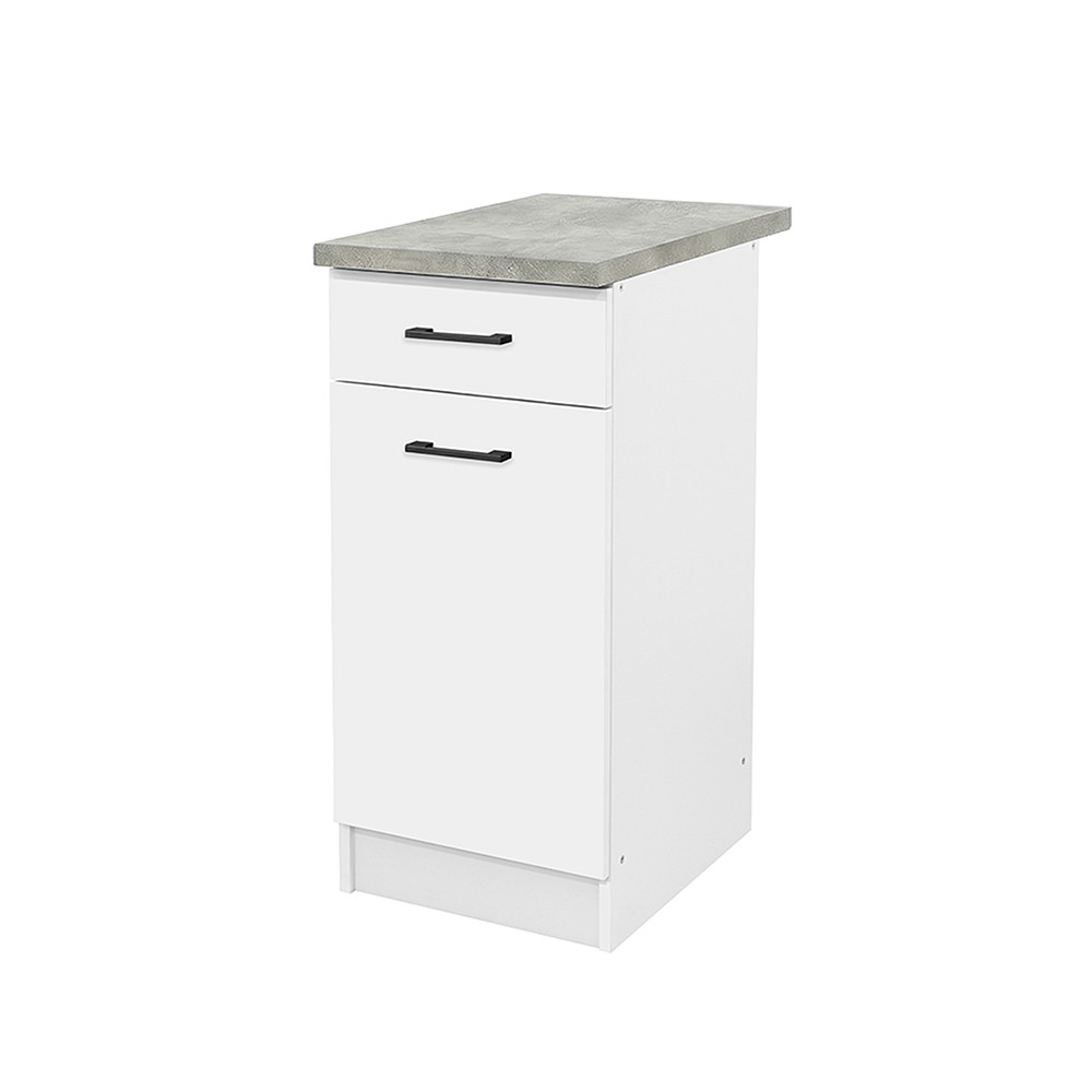 Dulap de bază Praktik 40 cu 1 ușă și 1 sertar - corp alb, față albă