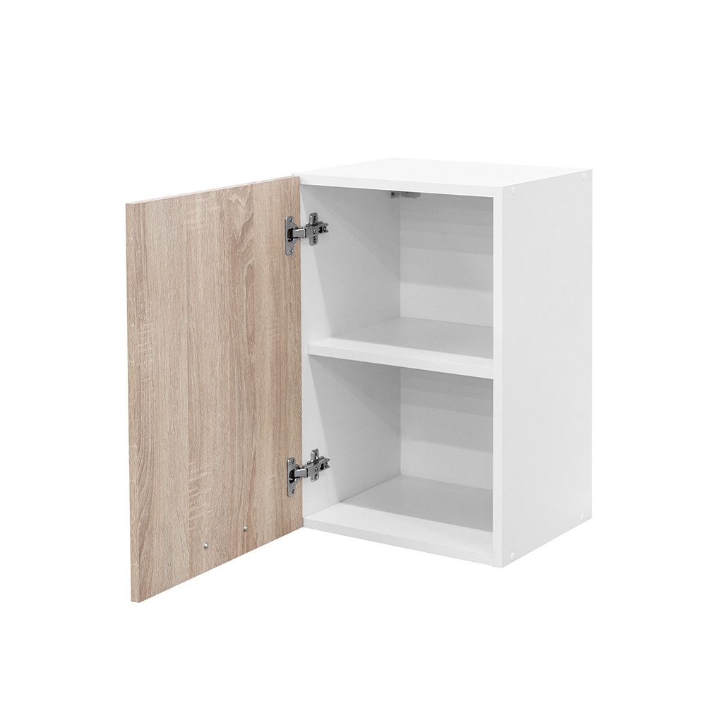 Dulap suspendat Praktik 40 cu 1 ușă - corp alb, față stejar Sonoma