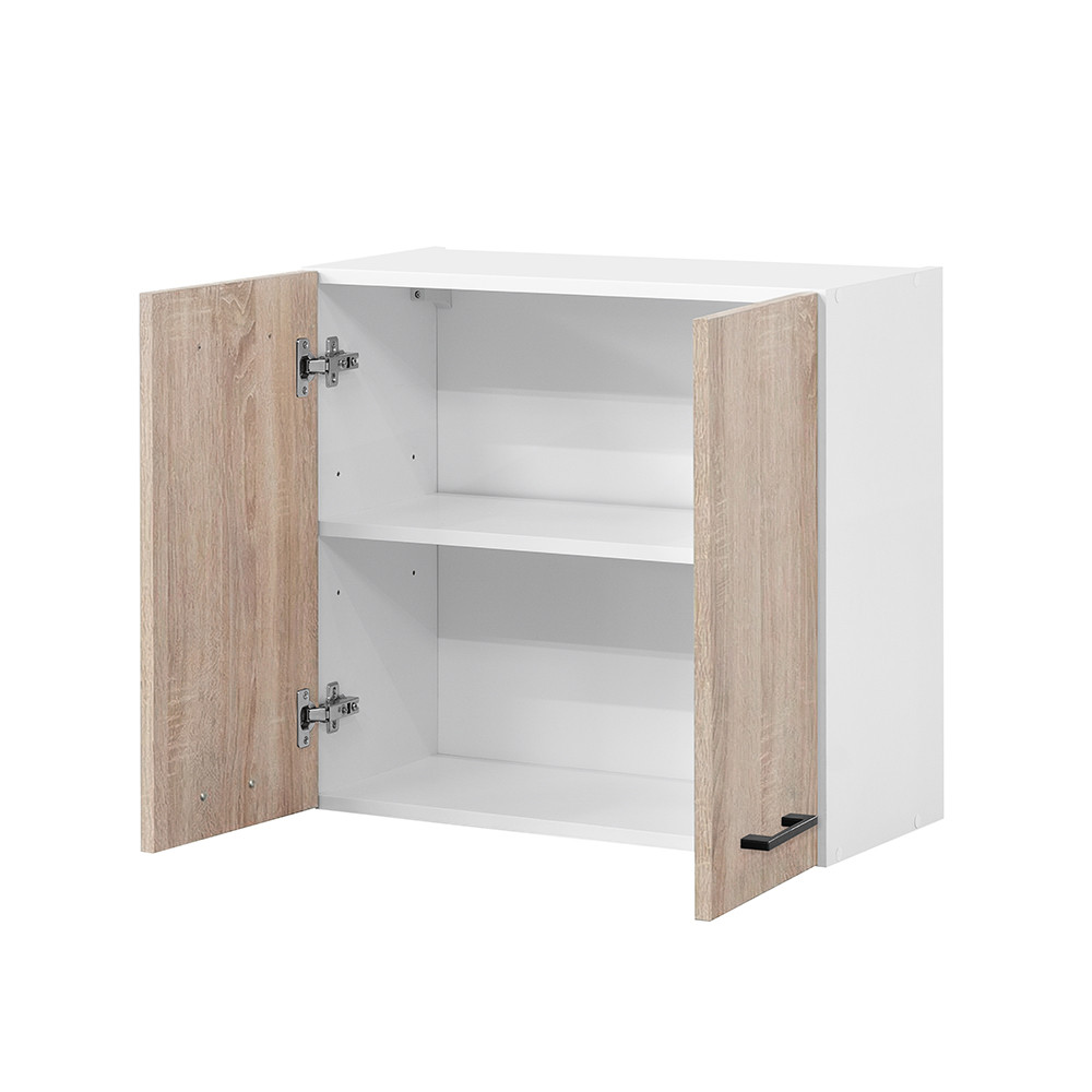 Dulap suspendat Praktik 60 cu 2 uși - corp alb, față stejar sonoma