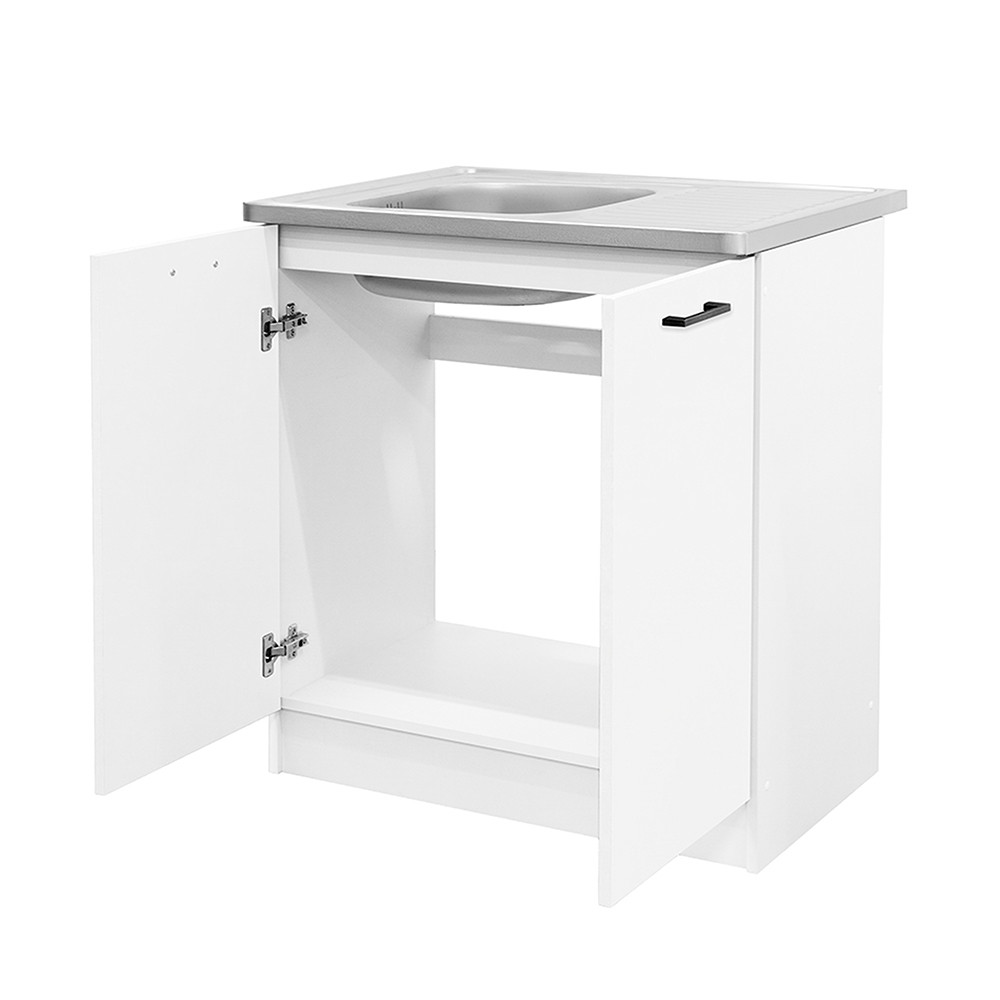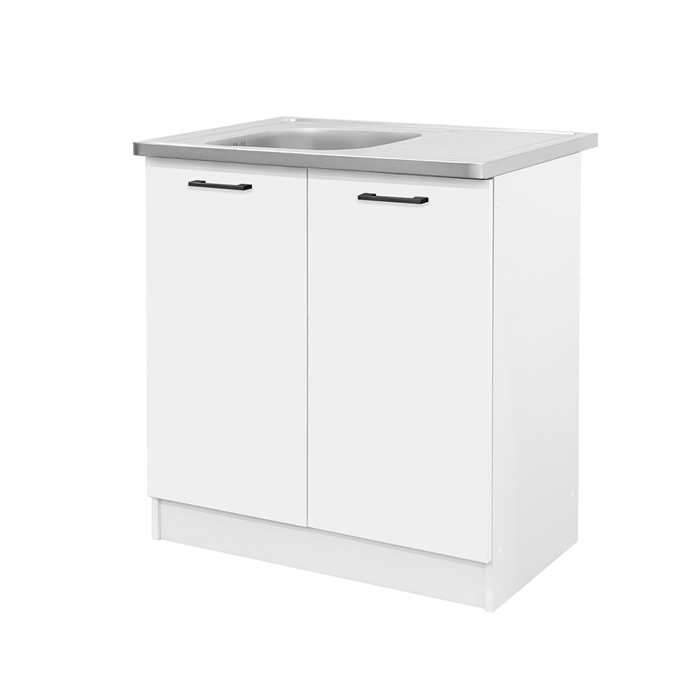 Dulap de bază Praktik 80 cu 2 uși și chiuvetă - corp alb, față albă