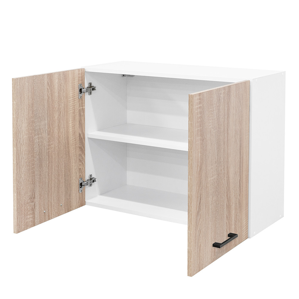 Dulapul superior Praktik 80 cu carcasă albă și față din stejar sonoma se va potrivi în orice stil interior. Schema sa de culori luminoase extinde vizual spațiul, făcându-l o alegere ideală pentru bucătării mici, garaje și livinguri open space cu bucătărie americană. Liniile sale curate sunt o soluție populară pentru locuințele moderne de astăzi.