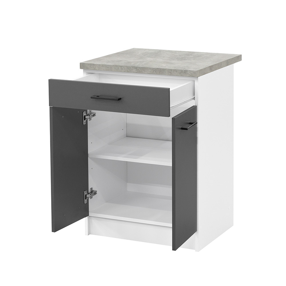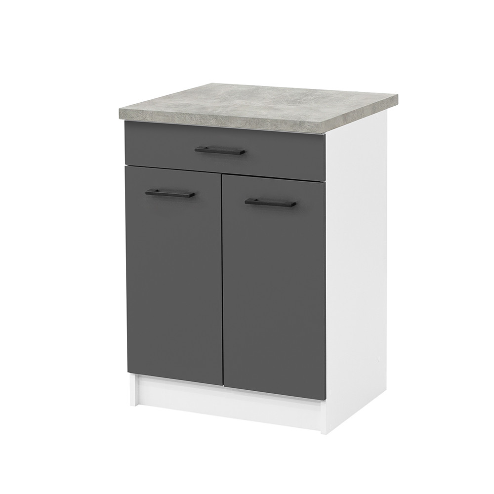 Dulap de bază Praktik 60 cu 2 uși și 1 sertar - corp alb, față antracit