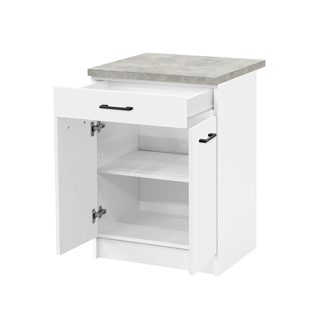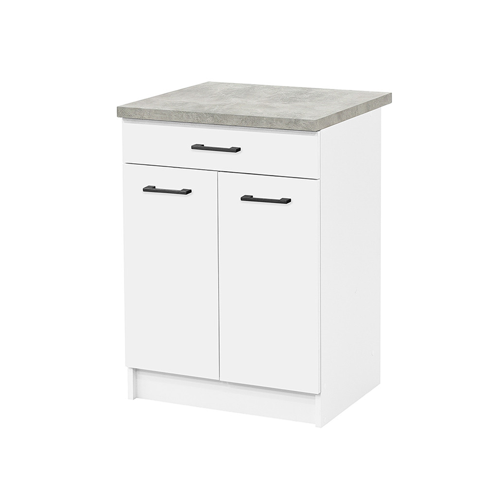 Dulap de bază Praktik 60 cu 2 uși și 1 sertar - corp alb, față albă