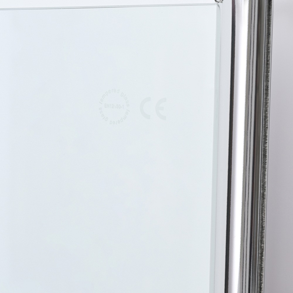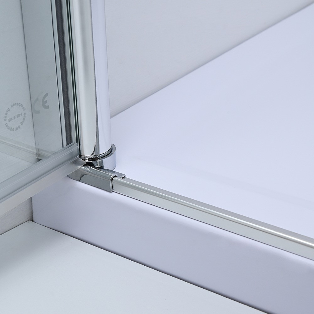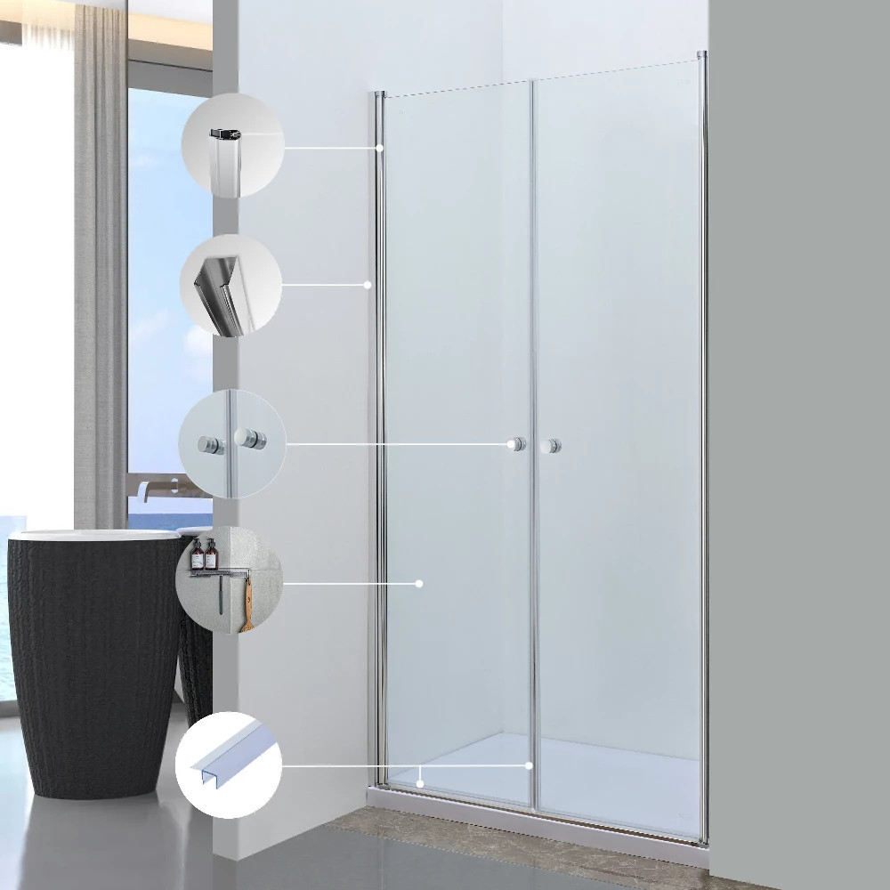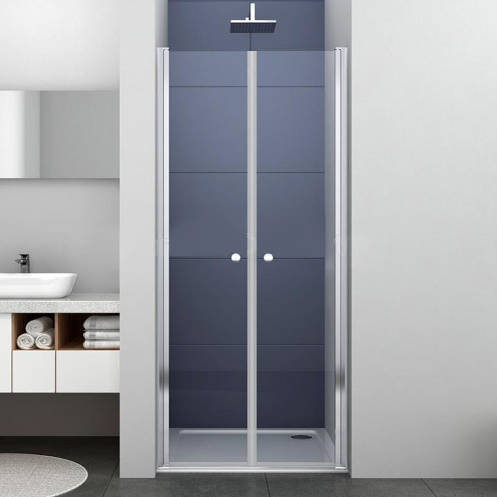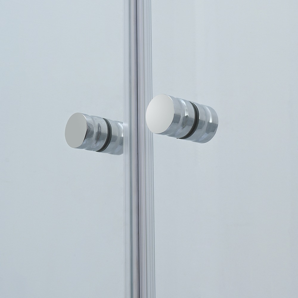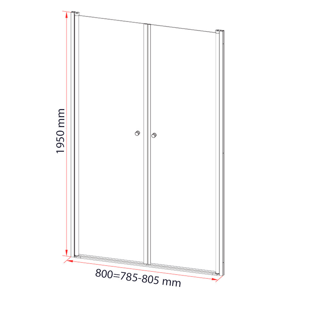 Ușa de duș este echipată cu un profil lustruit din aliaj de aluminiu, sticlă securizată transparentă de 5 mm și un mâner din zinc. Modelul măsoară 800 x 1950 mm și poate fi ajustat între 785-805 mm.
