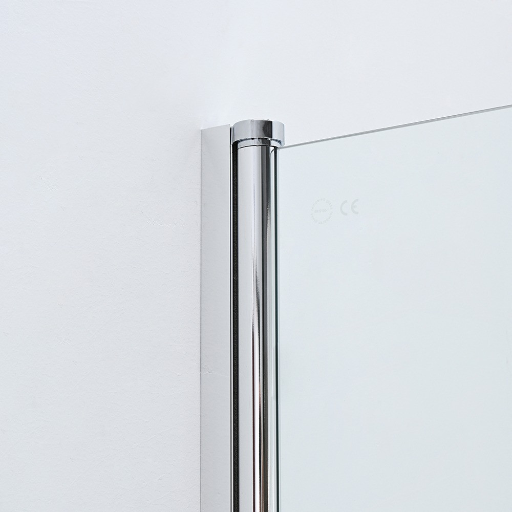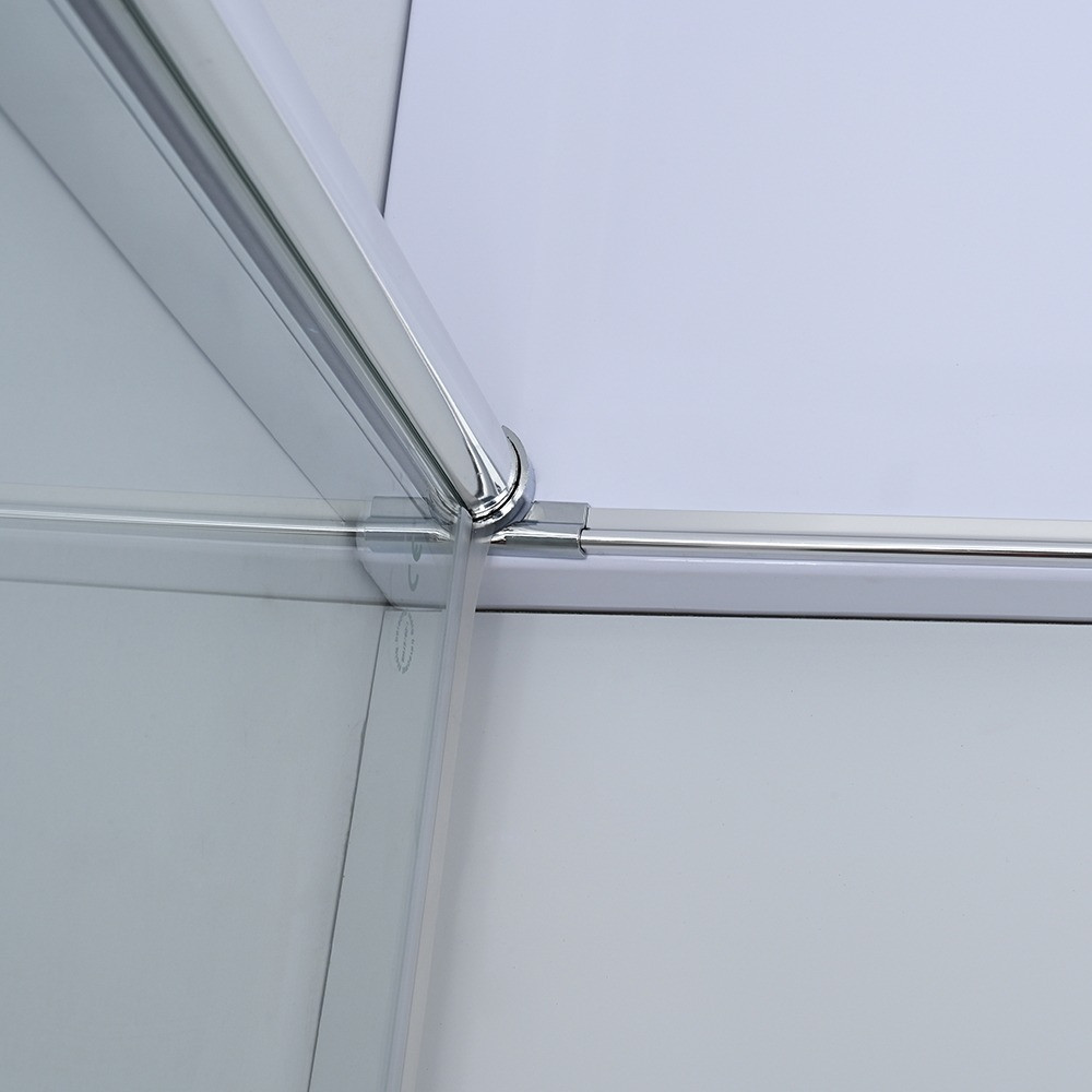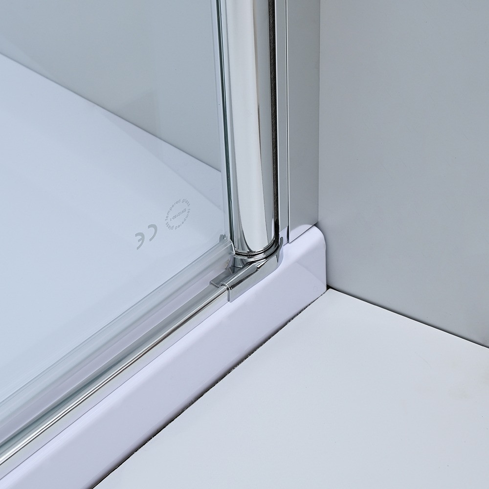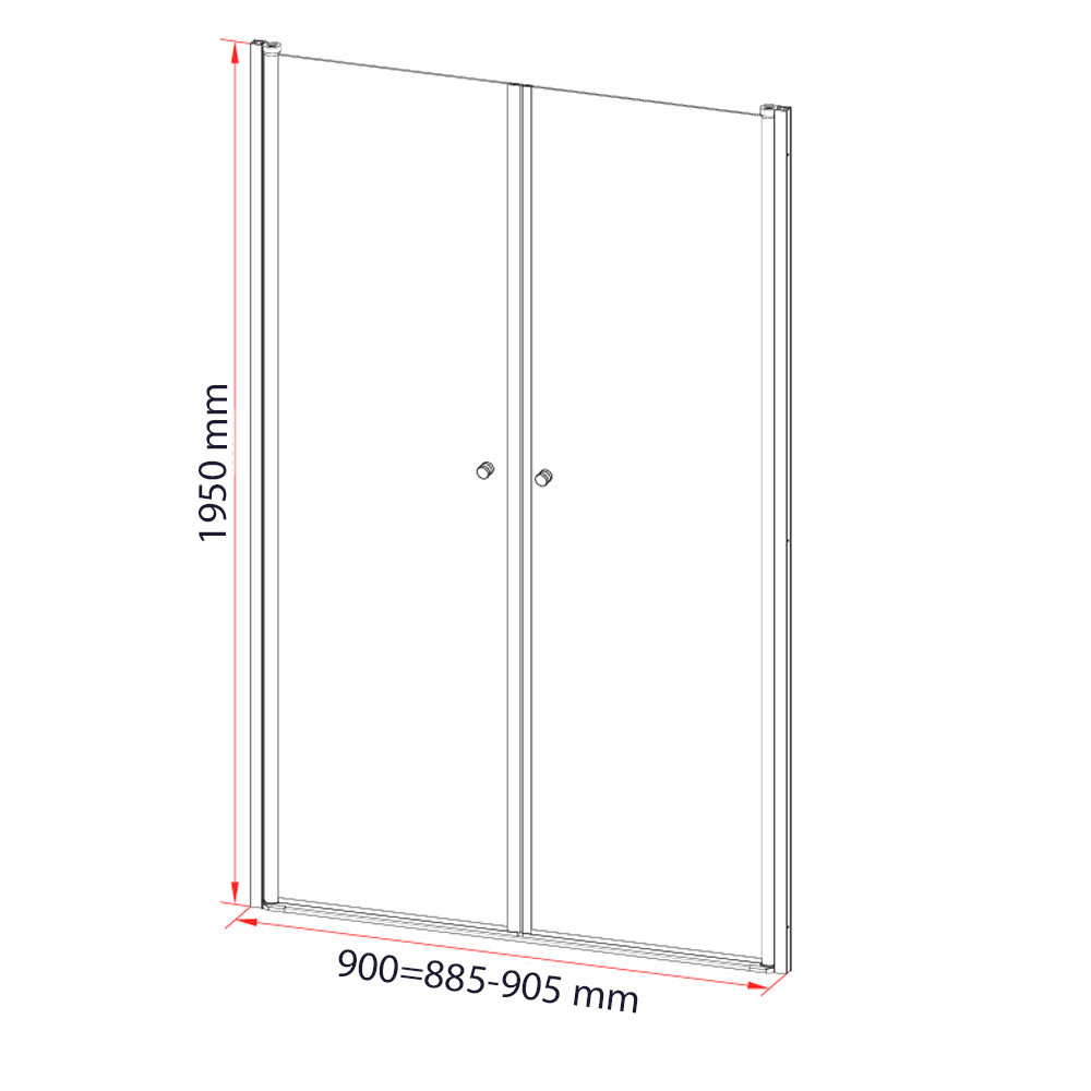 Ușa de duș este echipată cu un profil lustruit din aliaj de aluminiu, sticlă securizată transparentă de 5 mm și un mâner din zinc. Modelul măsoară 90 x 195 cm și este reglabil între 885-905 mm.