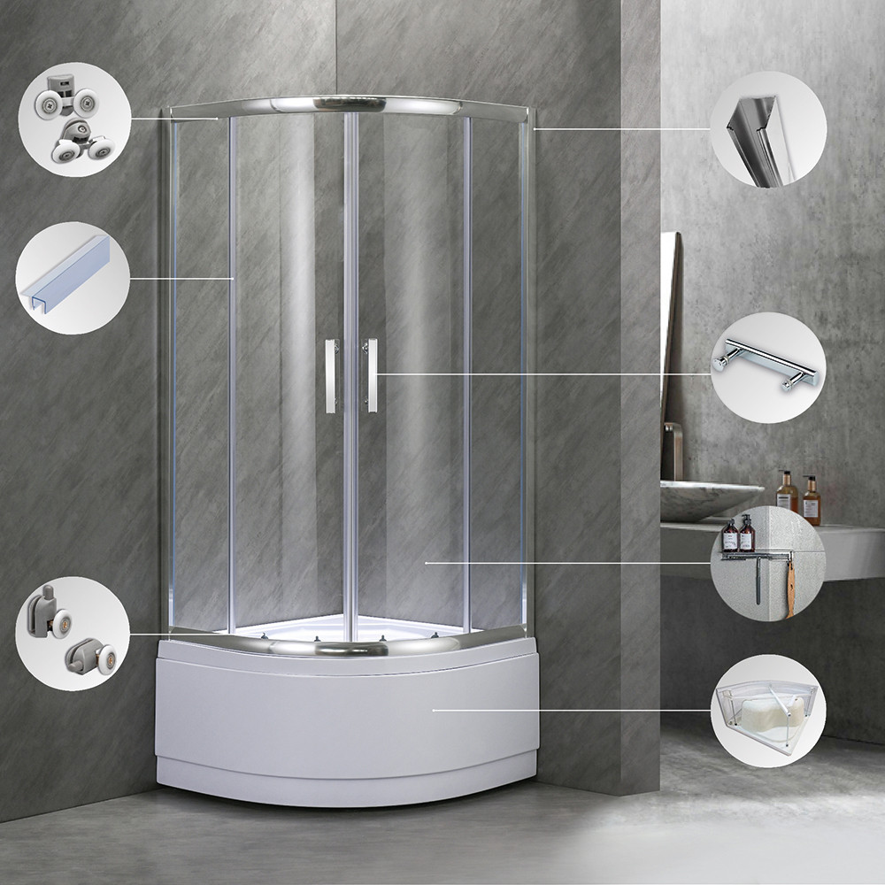 - Tip: cabină de duș curbată cu tavă de duș adâncă