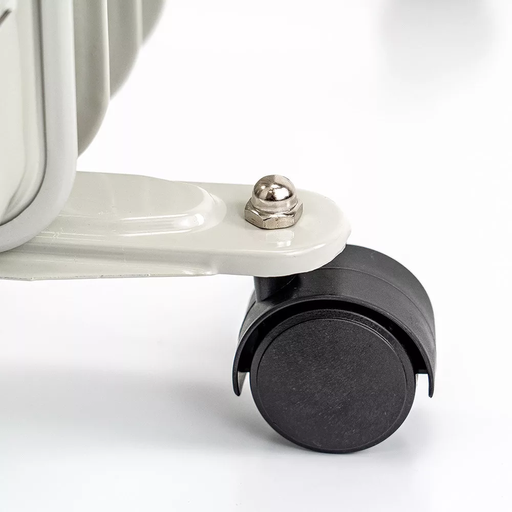 Radiatorul este echipat cu mânere de transport încorporate și roți netede, astfel încât poate fi mutat cu ușurință în camera dorită. Indicatorul luminos de alimentare arată întotdeauna dacă dispozitivul este în funcțiune, astfel încât acesta poate fi monitorizat constant.