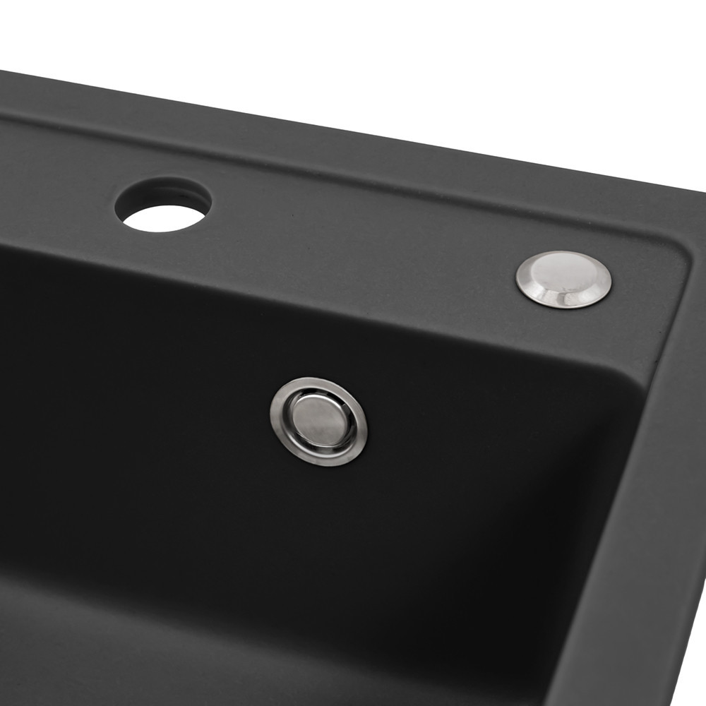 Chiuveta pătrată din granit negru Nia satisface atât nevoile estetice, cât și pe cele funcționale. Metoda sa de instalare încastrată conferă bucătăriei tale un aspect modern, în timp ce dimensiunile compacte și materialele de calitate premium asigură o durată lungă de viață.