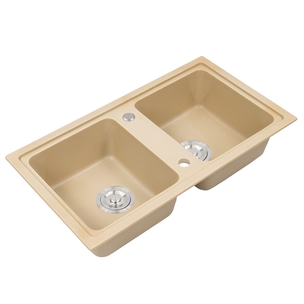 Chiuvetă Tia Square din granit bej - cu două lavoare pentru confort și eleganță