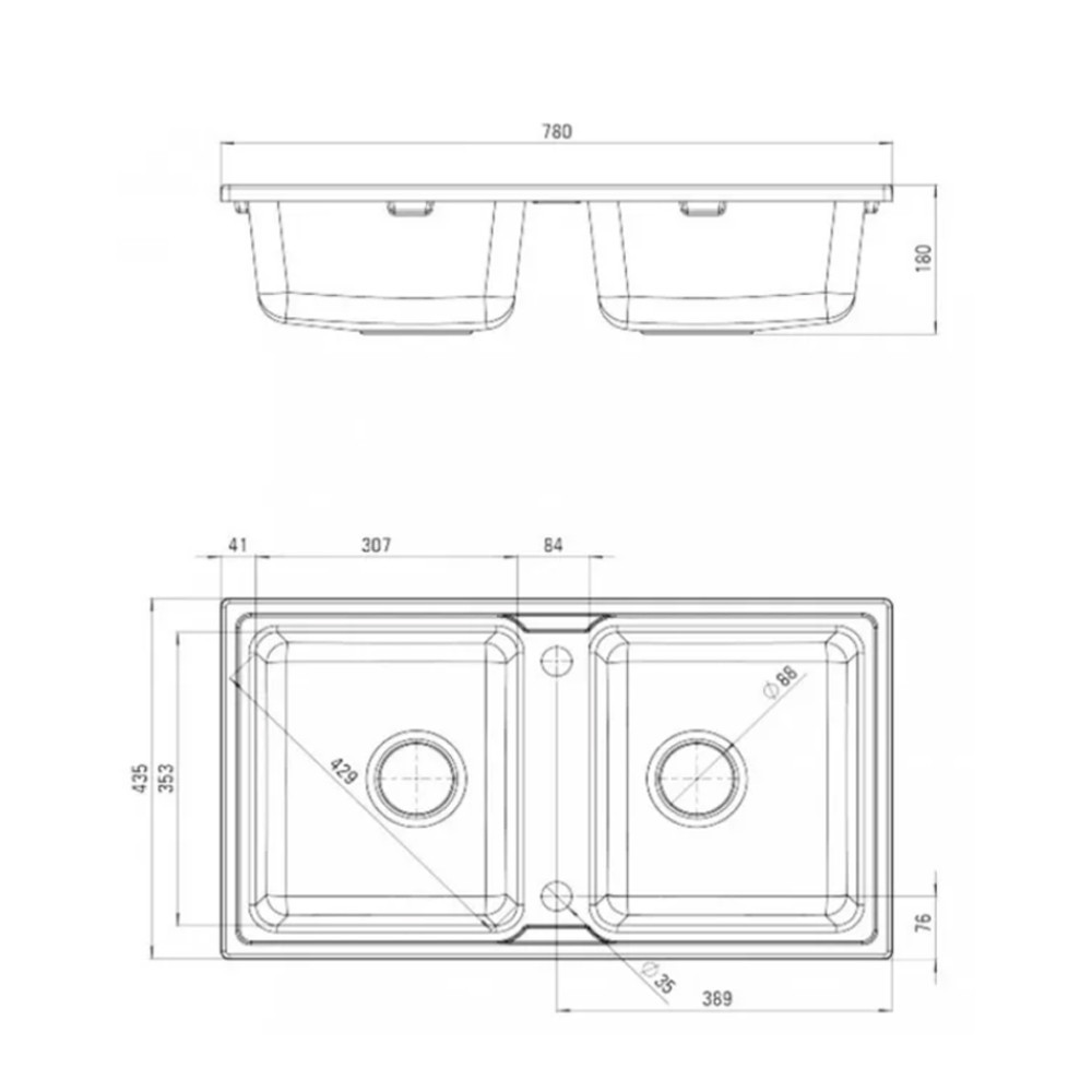 Chiuveta pătrată cu două cuve Tia vă permite să lucrați ușor și eficient în bucătărie. Două bazine separate asigură că uneltele și suprafețele tale sunt întotdeauna curate în timpul spălării vaselor și a activităților din bucătărie.