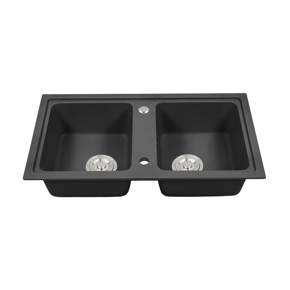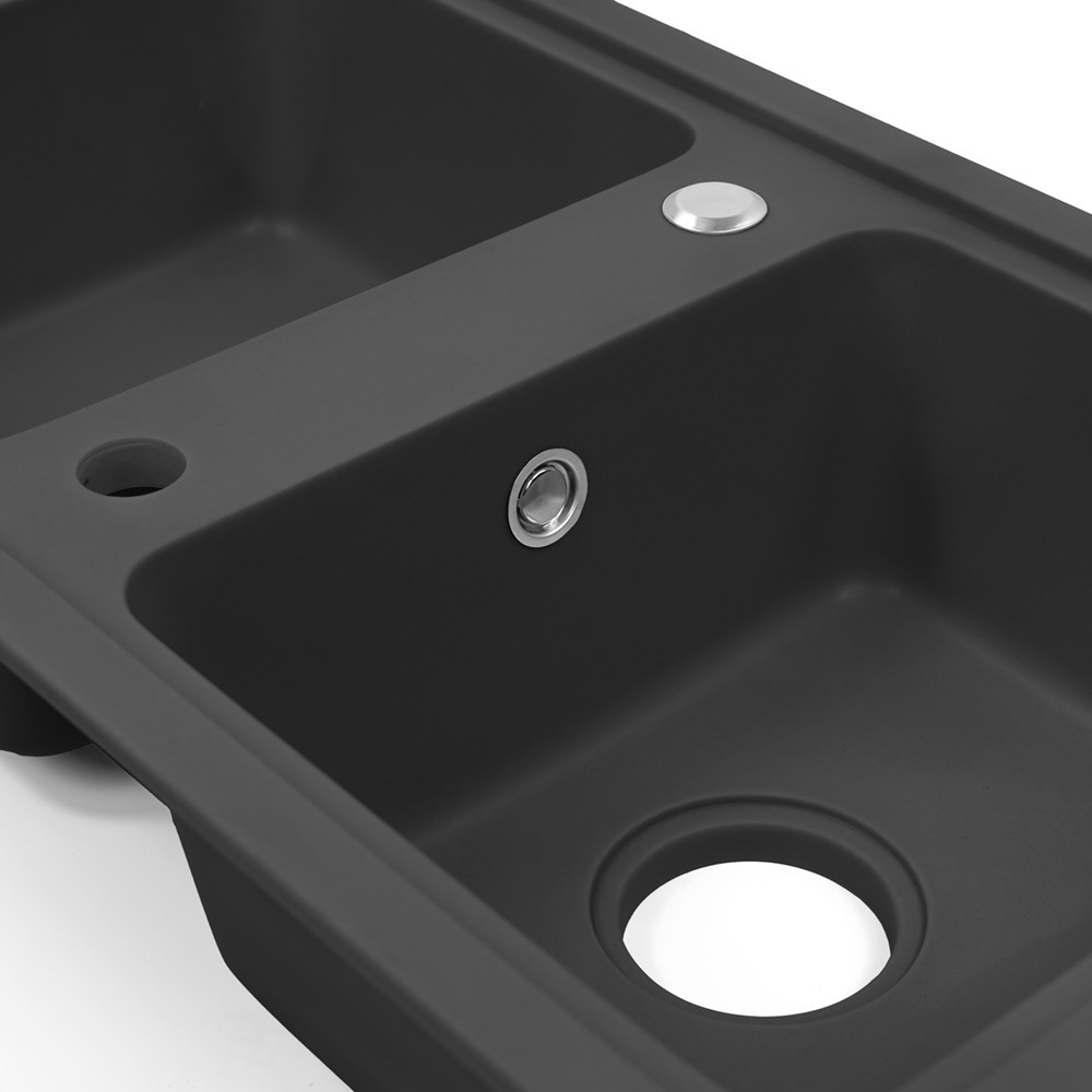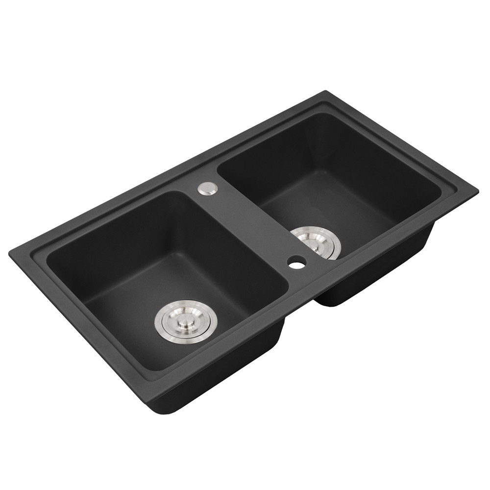 Chiuvetă Tia Square din granit negru - cu două bazine pentru confort și eleganță