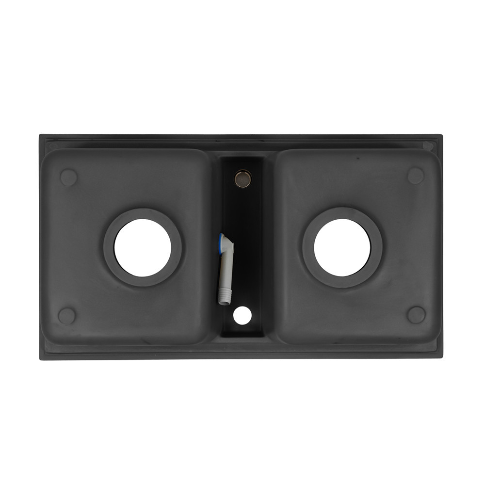 Chiuveta pătrată Tia din granit cu două cuve, de culoare neagră, va deveni noua piesă centrală a bucătăriei tale. Două lavoare asigură o muncă confortabilă și eficientă, în timp ce finisajul din granit negru emană eleganță și stil.