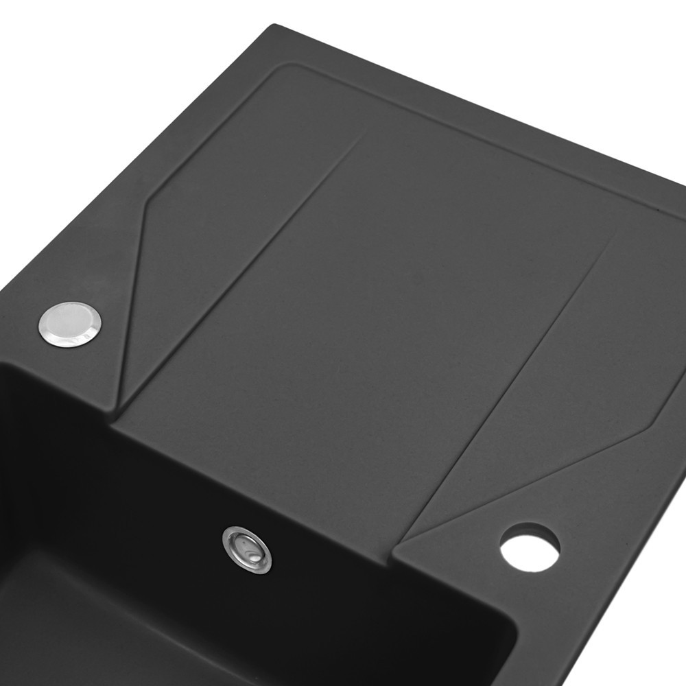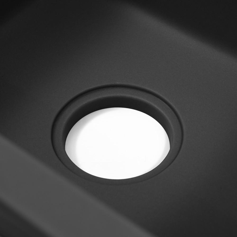 Chiuveta pătrată Gori din granit cu o singură cuvă, de culoare neagră, îndeplinește atât cerințele de calitate, cât și cele de stil din bucătăria dumneavoastră. Materialul compozit granit este o combinație perfectă de nisip cuarțos și rășini, care oferă o rezistență excelentă la impact, rezistență la căldură (până la 250°C), decolorare și șocuri termice, conform standardului european EN 13310.