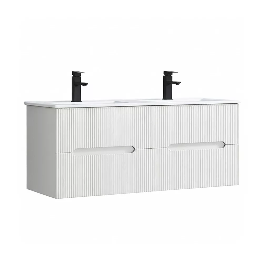 Leziter Trent Mobilier de baie 120 cm cu chiuvetă ceramică (2 sertare) alb