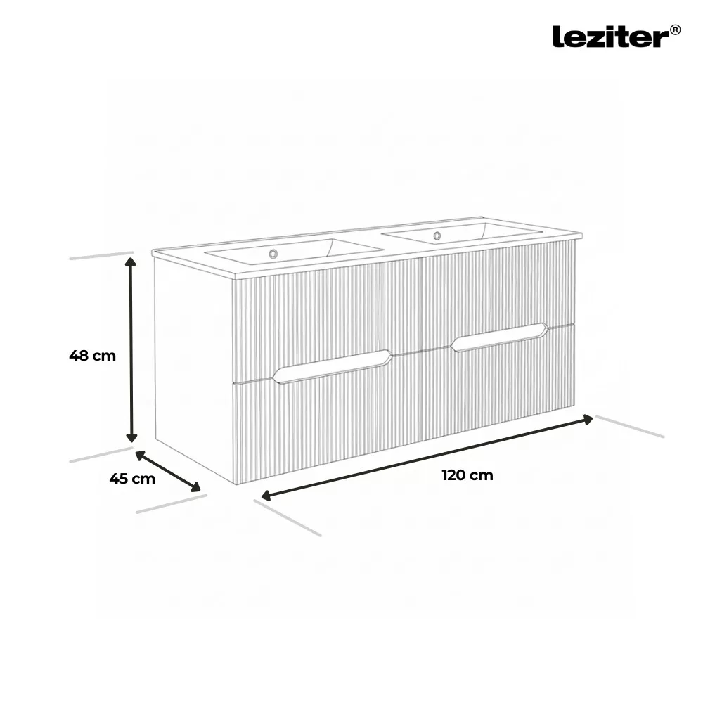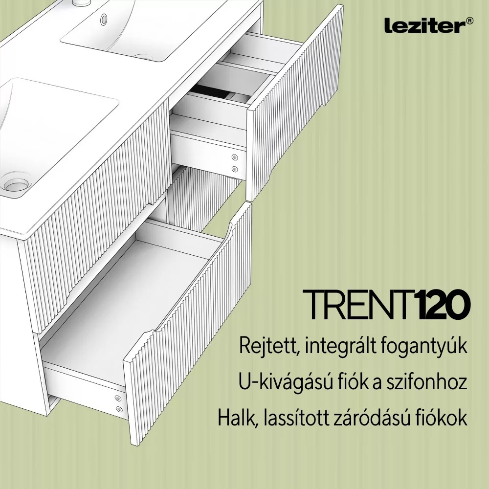 Mobilierul de baie Leziter Trent combină armonios estetica și caracterul practic. Panoul frontal canelat îi conferă un caracter curat și modern, în timp ce mânerul integrat îl face comod de utilizat. Fixarea pe perete creează un aspect fără efort și face curățarea podelei mai rapidă.