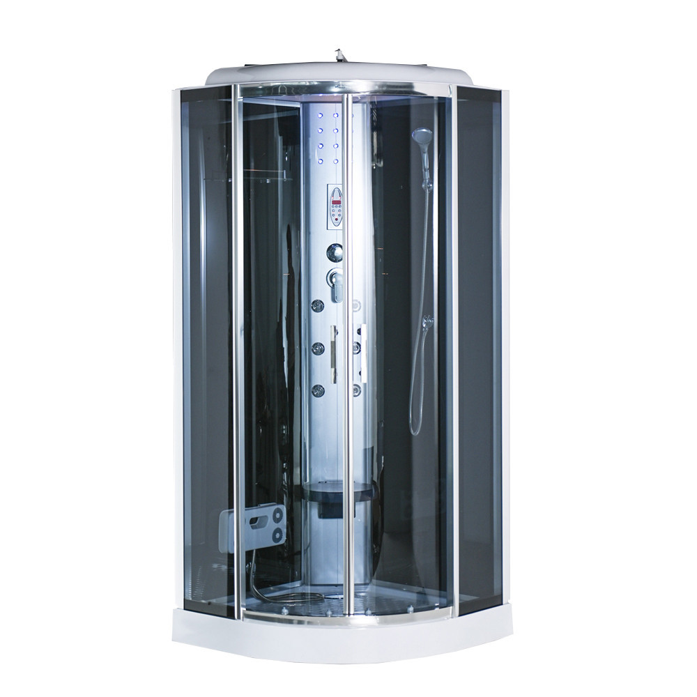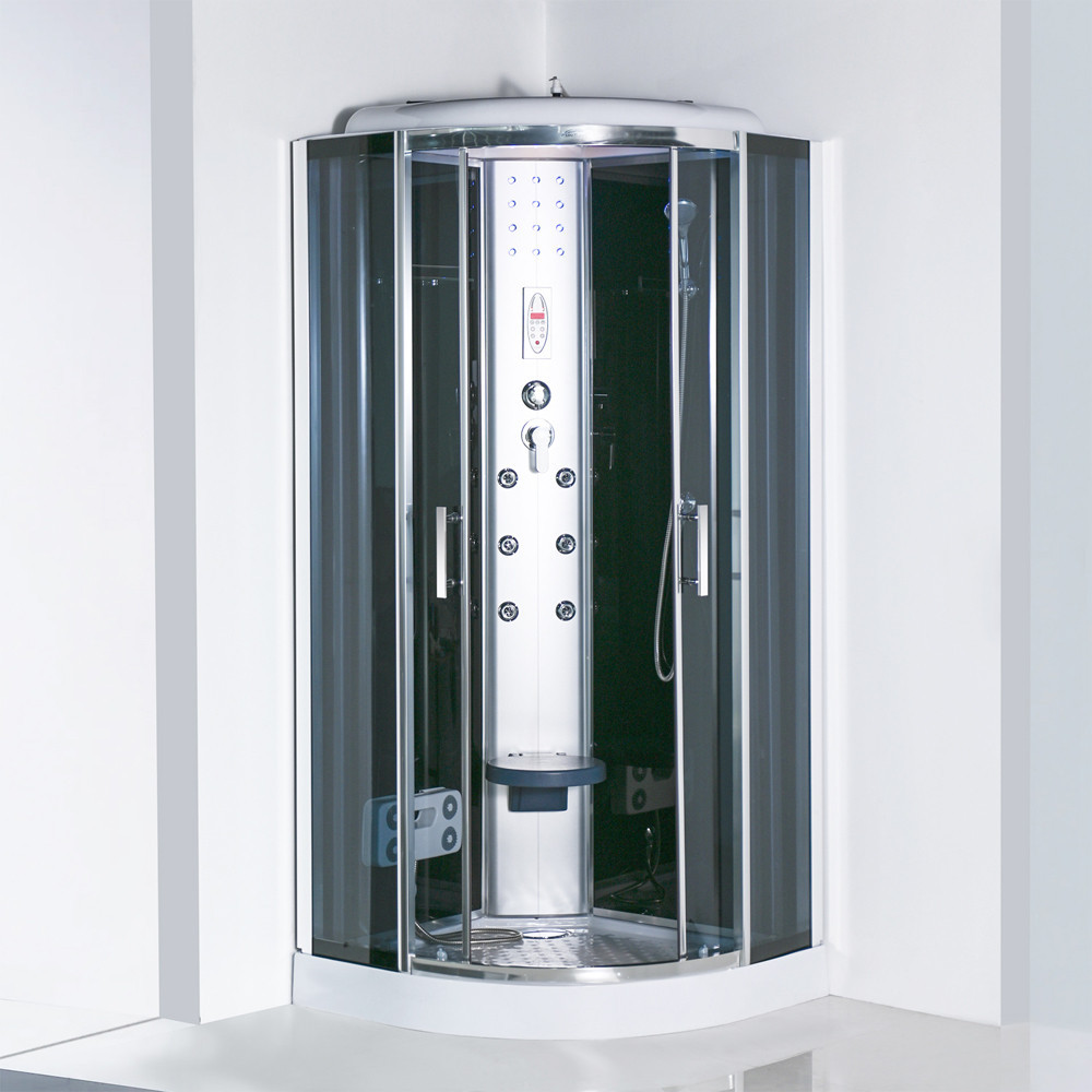 Cabina de duș este echipată cu 6 duze pentru masajul spatelui. Panoul din spate din aluminiu și electronica încorporată, panoul de control, radioul și difuzoarele permit ca fiecare duș să devină o experiență reală. Iluminarea ambientală din spate și de sus, precum și iluminarea de deasupra, sporesc și mai mult relaxarea, în timp ce raftul practic de toaletă și masajul pentru picioare asigură un confort maxim.