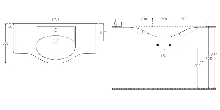 Lavoarul ceramic cu aripioare V105 are multe caracteristici pozitive. Acestea includ linii perfect curate și suprafețe de încărcare drepte . Are orificiu pentru robinet și preaplin . Lavoarul are dimensiunile de 1054x500 mm .