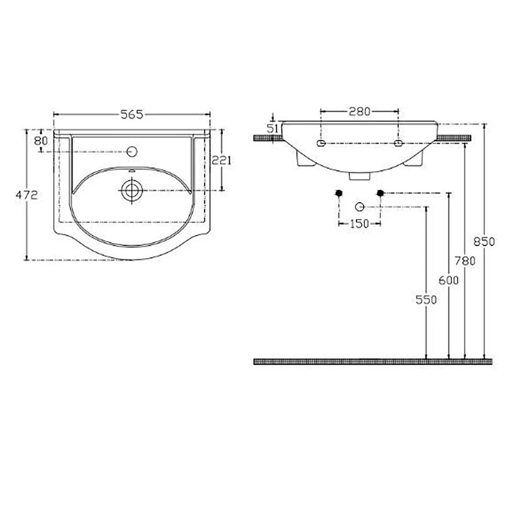 Lavoarul ceramic cu aripioare V55 are multe caracteristici pozitive. Acestea includ linii perfect curate și suprafețe de încărcare drepte . Are orificiu pentru robinet și preaplin . Lavoarul are dimensiunile de 565x472 mm .