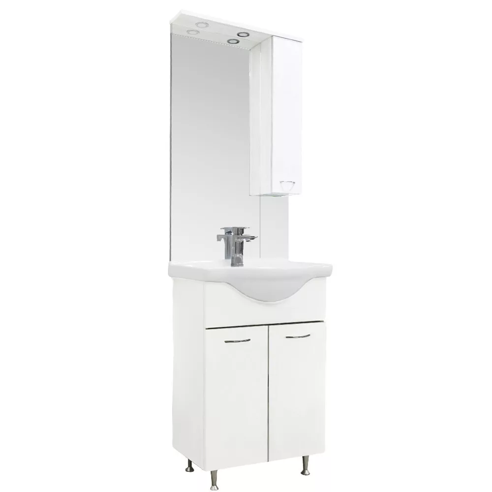 Mobilierul de baie ocupă puțin spațiu, dar are un dulap inferior și un dulap superior unde pot încăpea confortabil articole de toaletă pentru baie. Datorită spațiului redus necesar, este potrivit și pentru mobilarea băilor mai mici, de exemplu în apartamentele cu panouri. Produsul este fabricat din plăci de mobilier de înaltă calitate și este prevăzut cu margini asortate în culori . Mobilierul de baie este disponibil într-o versiune independentă .