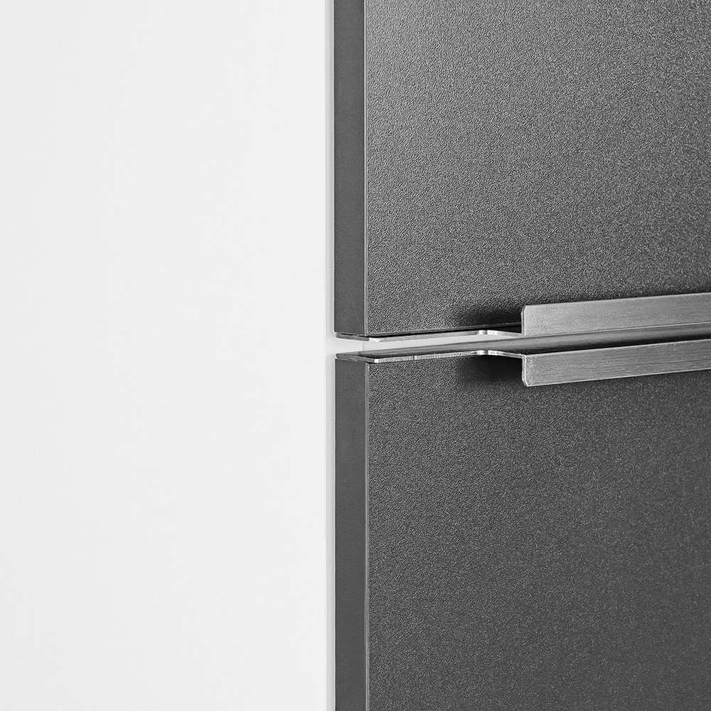 Dulapul lateral suspendat Vario Trim 35cu design suspendat oferă băii un aspect modern și curat, facilitând în același timp curățenia zilnică: podeaua este lăsată liberă dedesubt, făcând ca spațiul să pară mai spațios și mai ordonat. Ușa poate fi montată atât în stânga, cât și în dreapta, ceea ce este deosebit de avantajos în băile mici, unde fiecare centimetru contează.Dulapul este fabricat din panouri de mobilier durabile care rezistă la umiditatea zilnică din baie.Suprafețele sunt ușor de curățat. Profilul mânerului metalic Trim accentuează și mai mult caracterul elegant și modern al mobilierului; acesta oferă confort în utilizare și se îmbină armonios cu aspectul sofisticat al suprafețelor albe antracit.
