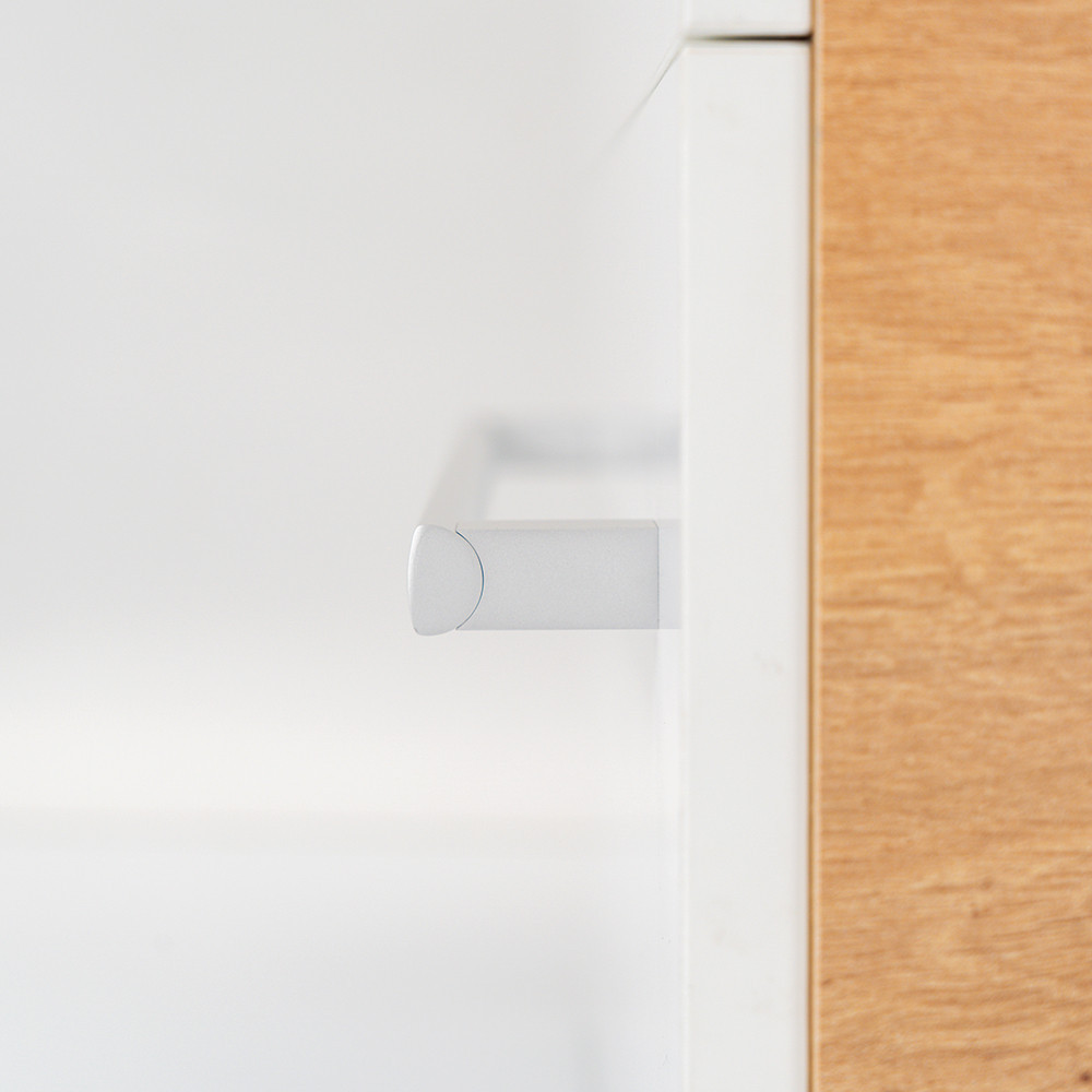 - Schemă de culori sofisticată: The corp de stejar și Combinația frontului alb conferă mobilierului un aspect elegant și atemporal.
