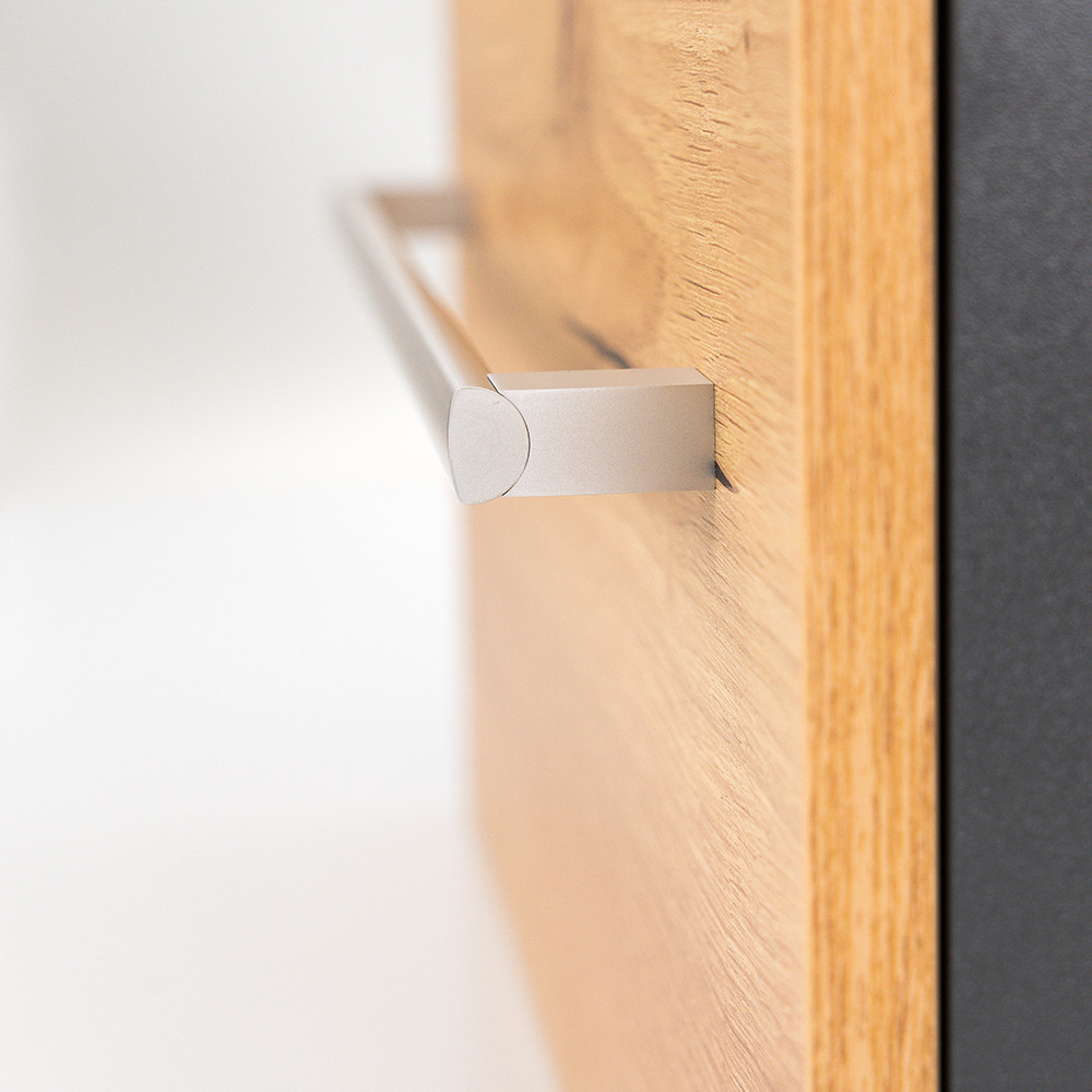 - Schemă de culori sofisticată: The corp antracit și Combinația de față din stejar conferă mobilierului un aspect elegant și atemporal.