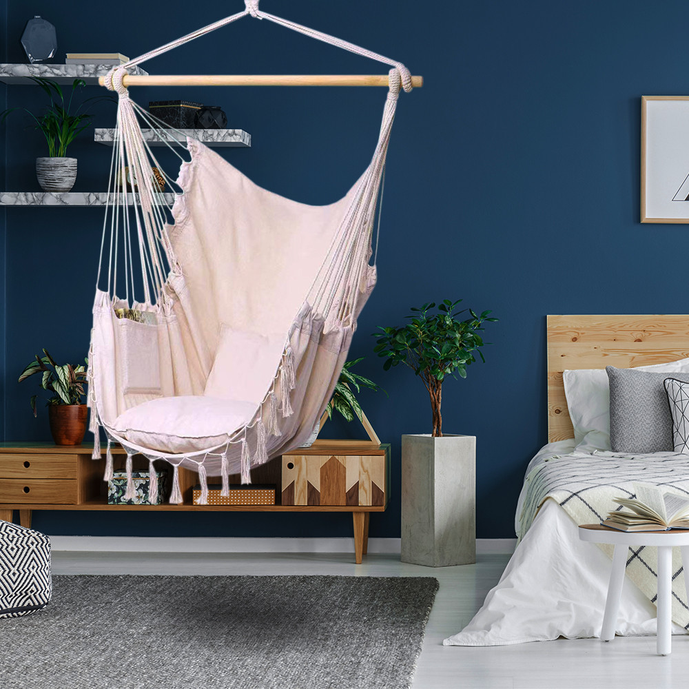 Fie că este vorba de relaxare în aer liber sau de confort în interior, scaunul hamac Puerto este alegerea perfectă. Acesta poate fi agățat cu ușurință de ramurile copacilor din grădina sau curtea dvs. și la fel de ușor integrat în verandă, balcon sau camera de zi.