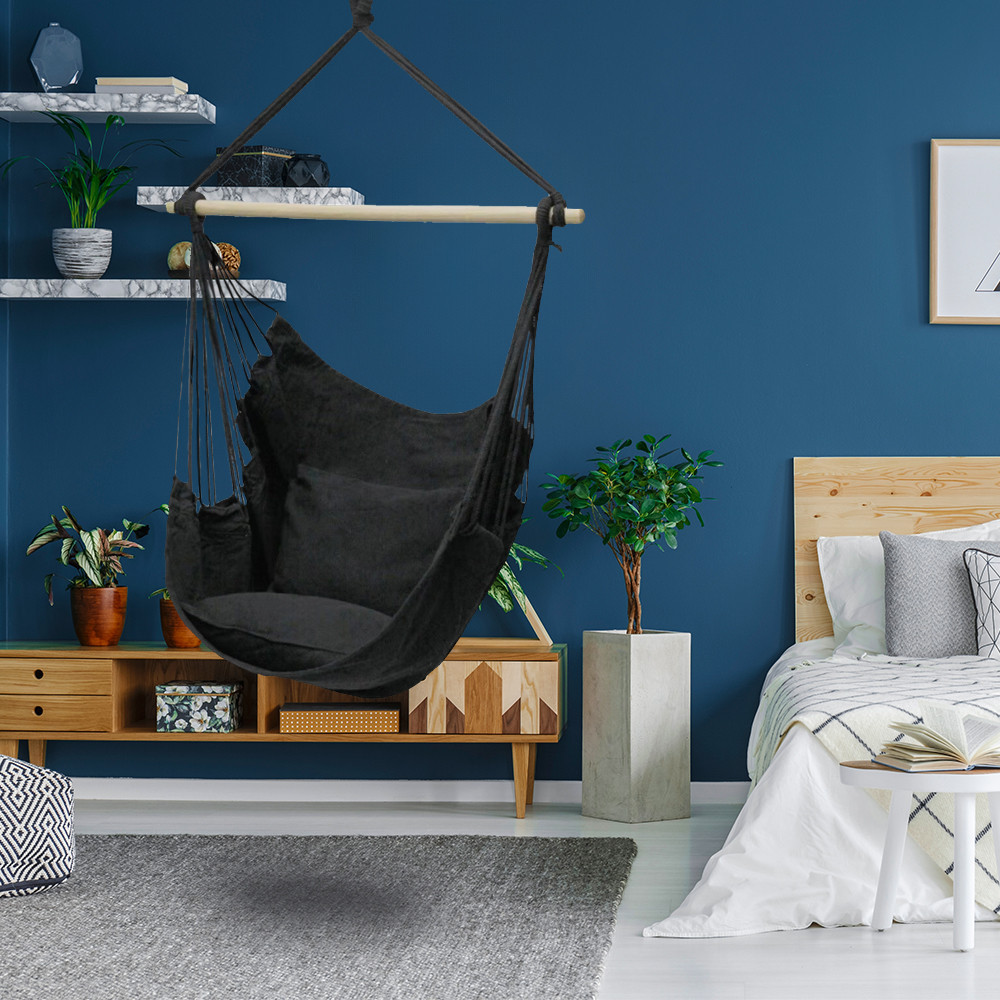 Fie că este vorba de relaxare în aer liber sau de confort în interior, scaunul hamac Puerto este alegerea perfectă. Acesta poate fi agățat cu ușurință de ramurile copacilor din grădina sau curtea dvs. și la fel de ușor integrat în verandă, balcon sau camera de zi.