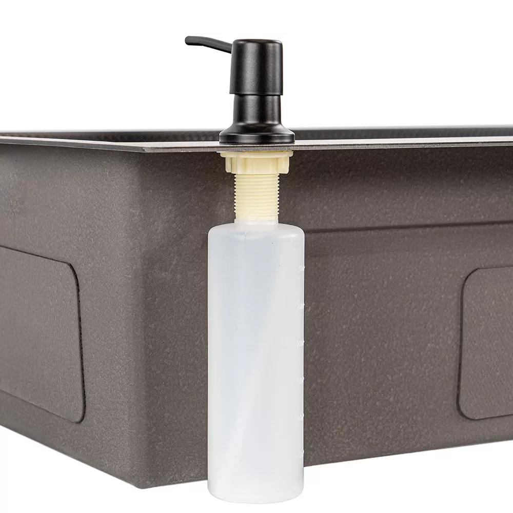 Un dozator încorporat de detergent pentru spălarea vaselor este un instrument eficient conceput pentru o gamă de chiuvete Leziter din inox. Acesta vă ajută să distribuiți detergentul pentru vase cu ușurință și precizie, menținându-vă în același timp bucătăria mai ordonată și mai igienică.