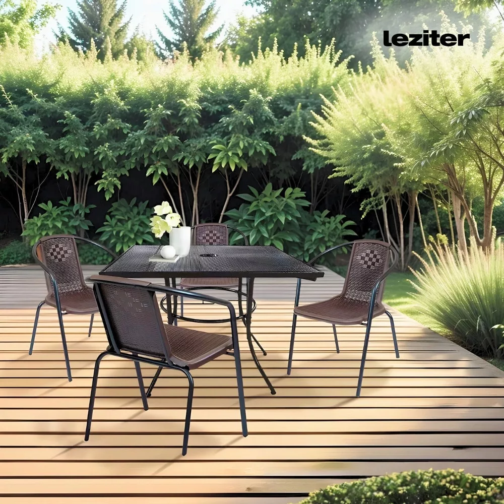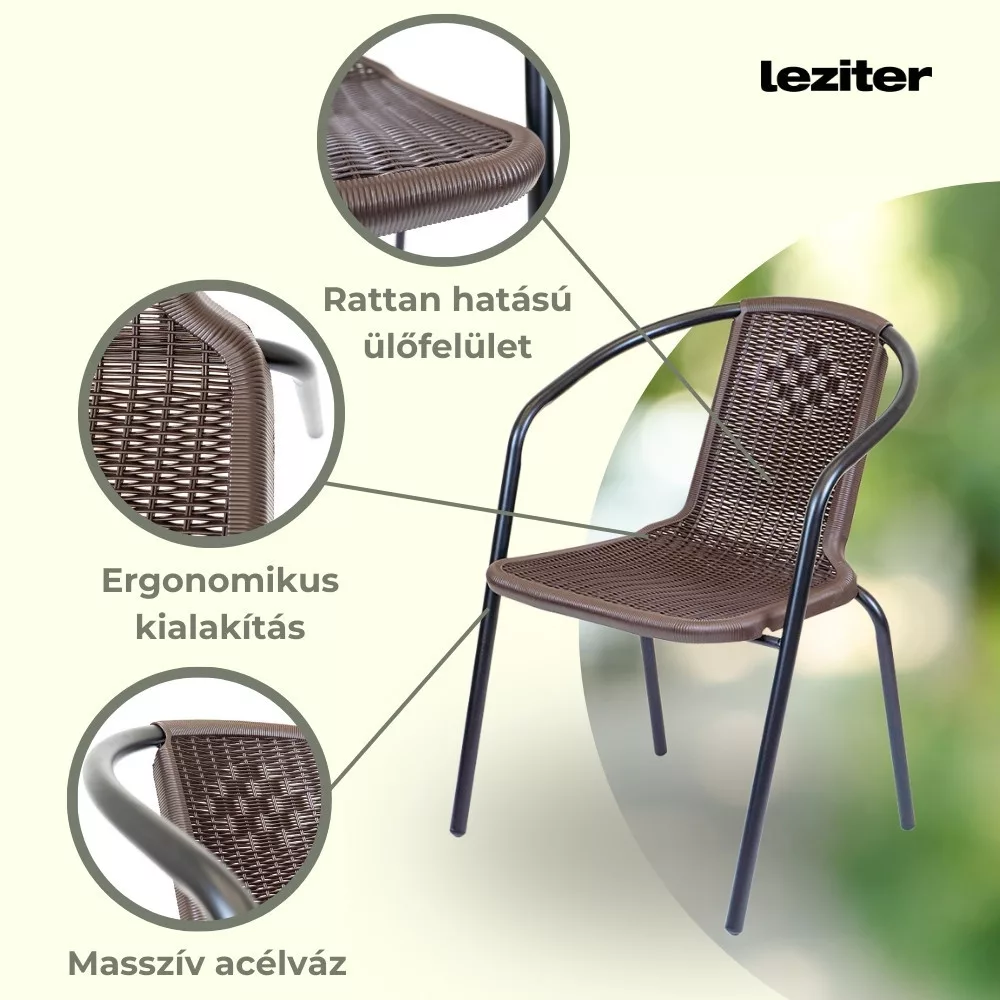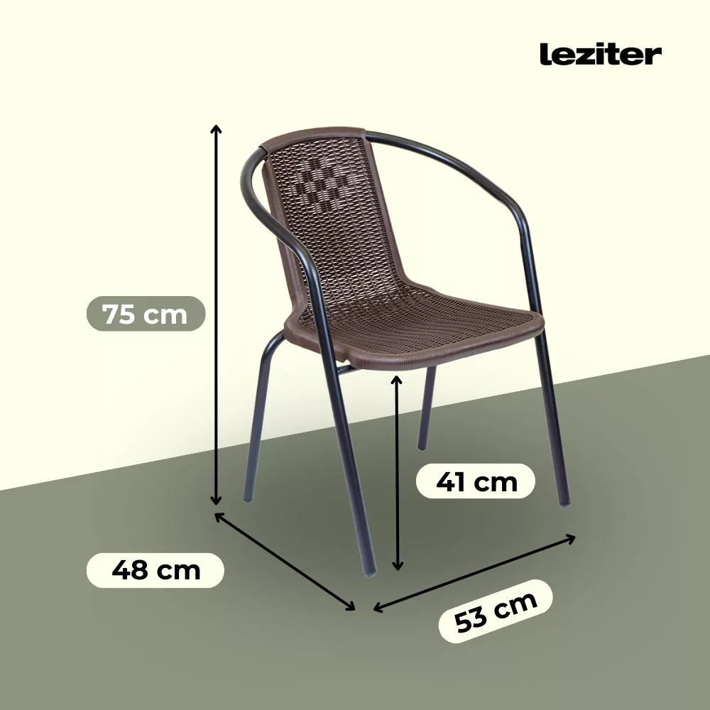 Acesta este un scaun de grădină modern, simplu și minunat, cu șezut din răchită cu efect de ratan. De asemenea, este excelent pentru luat masa și relaxare în aer liber. Este perfect atât pentru uz rezidențial, cât și comercial, cum ar fi restaurante, bistrouri și locuri de divertisment. Este foarte practic deoarece poate fi așezat unul peste altul, adică stivuit, așa că este ușor de depozitat și nu ocupă mult spațiu. Datorită cadrului său din oțel, are un design stabil și solid, o soluție durabilă și ușor de curățat datorită suprafeței sale din plastic.