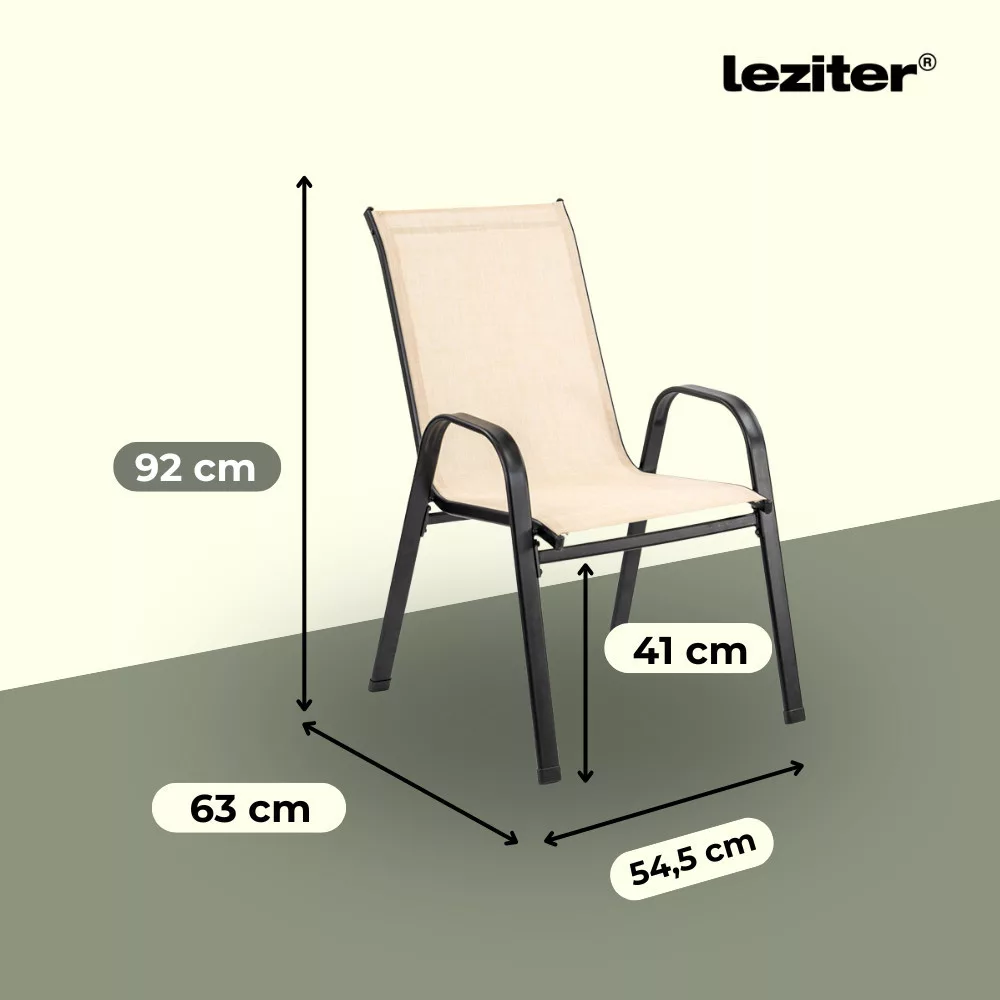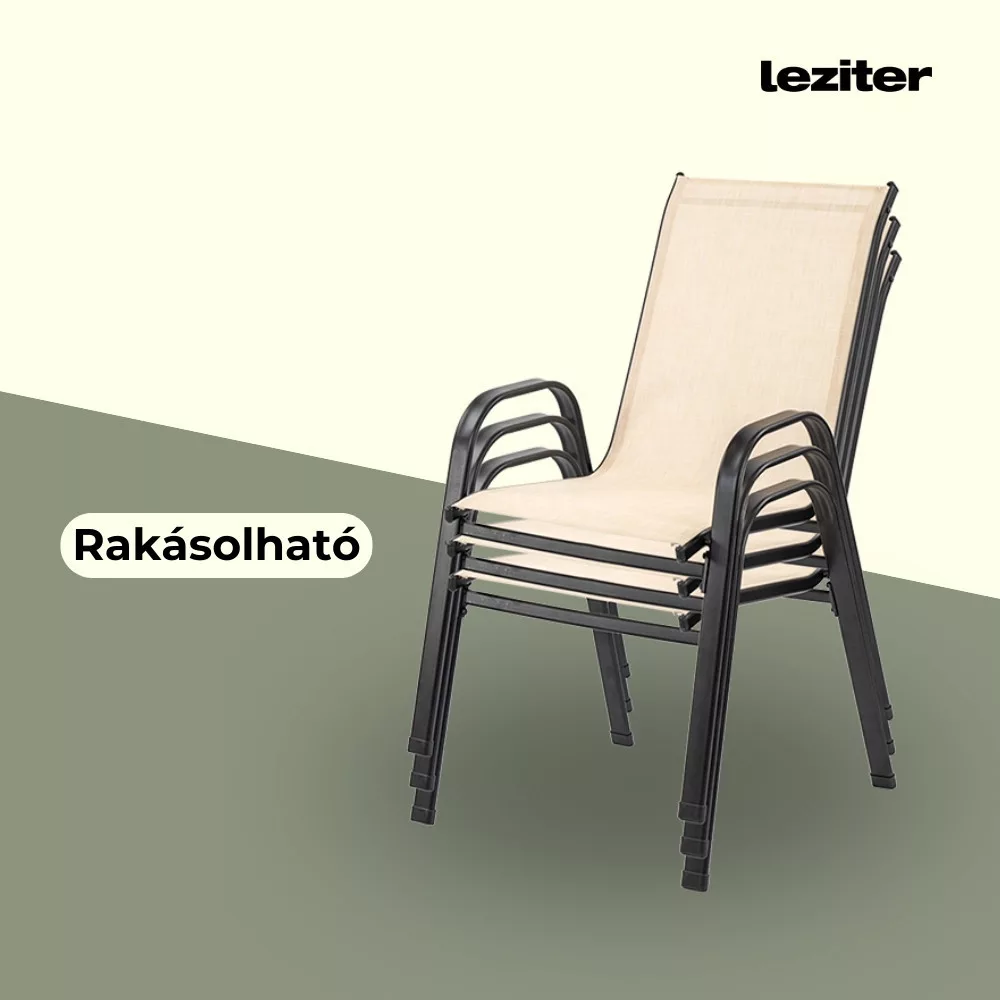 Scaunul de grădină Como aduce eleganța bejului și confortul modern în aer liber. Fabricat dintr-o combinație de oțel și material textil, scaunul cu înălțimea de 92 cm și lățimea de 54,5x63 cm oferă o ședere confortabilă, având dimensiunea ideală pentru a economisi spațiu în grădină, terasă sau balcon. Șezutul și spătarul acoperite cu material textil oferă confortul și respirabilitatea necesare în zilele fierbinți de vară, în timp ce cadrul din oțel garantează stabilitate și durabilitate în ciuda tuturor provocărilor vremii.