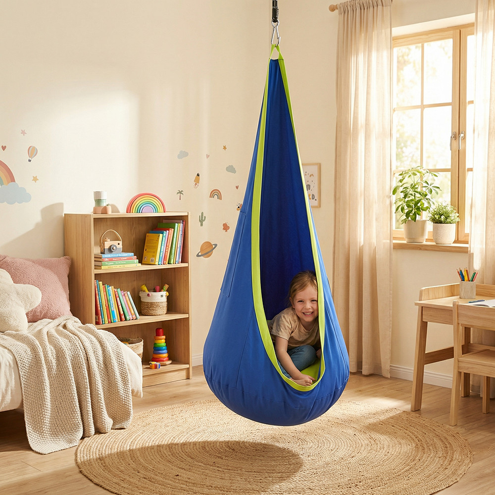 Forma închisă, de lacrimă, nu este doar plăcută din punct de vedere estetic, ci creează și o senzație de peșteră, ceea ce o face o alegere deosebit de bună pentru copii. Materialul învăluitor ajută la excluderea distragerilor externe, ceea ce îl face o alegere ideală pentru crearea unei zone de relaxare într-o cameră de zi, cameră pentru copii sau terasă acoperită. Punctul de suspensie superior permite montarea pe tavan sau pe structura de susținere, făcând scaunul hamac stabil și sigur.