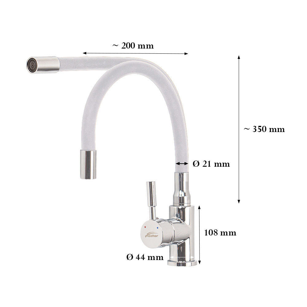 Culorile alb și crom oferă un aspect elegant, în timp ce gura de scurgere flexibilă cu rotație de 360° oferă libertate maximă pentru utilizarea zilnică în bucătărie.