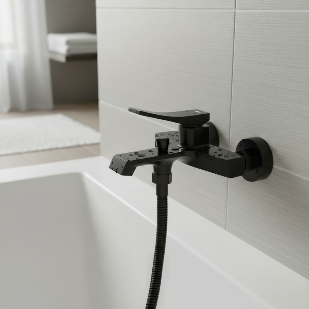 - Celor care caută un robinet de umplere a băii negru mat cu un design modern