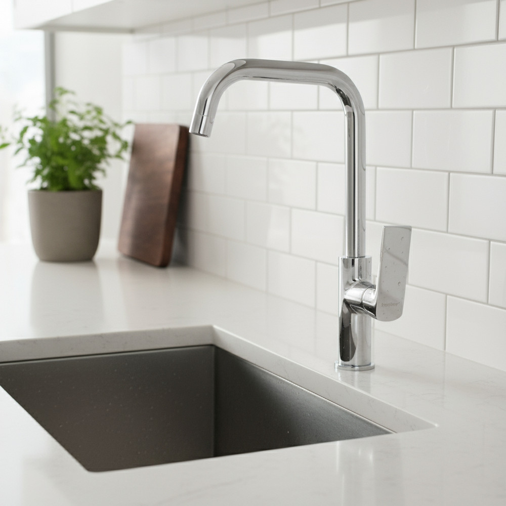 Corpul robinetului este fabricat din alamă, cel mai fiabil material dintre fitingurile de bucătărie. Acesta rezistă la coroziune, la temperaturi ridicate ale apei și la calcar, asigurând ani întregi de utilizare fără probleme.