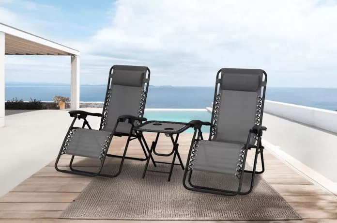Cadrul șezlongurilor este fabricat din oțel pentru un plus de stabilitate și durabilitate. Construcția din oțel asigură o fixare solidă, permițând în același timp șezlongurilor să fie pliate cu ușurință pentru depozitare și transport convenabil. Atât șezlongurile, cât și masa pliabilă au un design estetic.