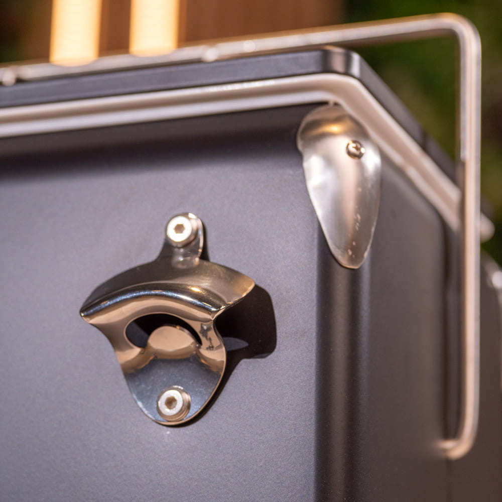 Produsul este echipat cu un mâner solid din oțel inoxidabil. Acest lucru nu numai că îl face mai ușor de transportat, dar are și o încuietoare care îl protejează de deschiderea neașteptată . Există, de asemenea, un desfăcător practic de sticle pe lateral, ceea ce îl face potrivit pentru răcirea și servirea băuturilor. Recipientul interior de 13 litri, fabricat din plastic alb, permite depozitarea în siguranță a produselor refrigerate. Lada frigorifică are o capacitate maximă de încărcare de 15 kg, fiind ideală pentru depozitarea gustărilor și băuturilor proaspete.