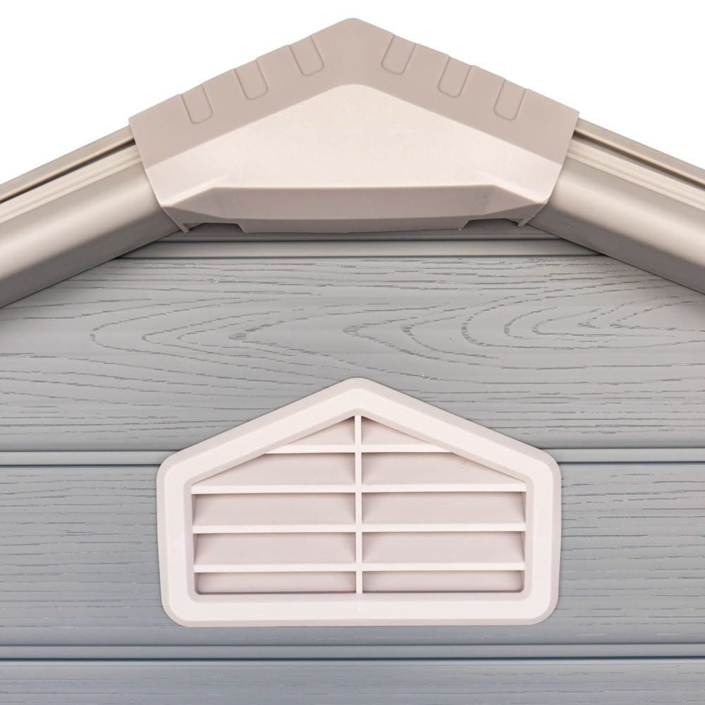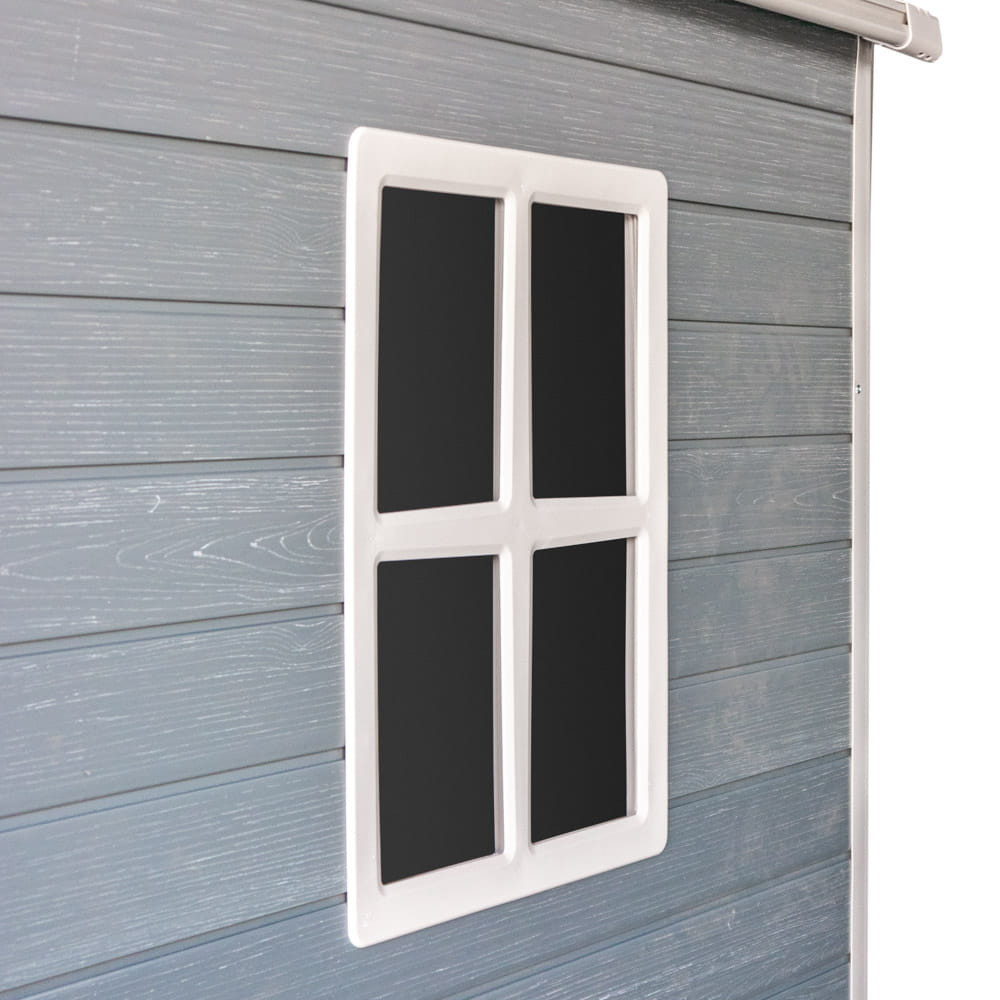 Căsuța de grădină este dotată cu o fereastră care oferă lumină naturală, facilitând organizarea și găsirea uneltelor de care aveți nevoie. În plus, orificiile de ventilație din partea superioară a pereților frontali și posteriori asigură o circulație adecvată a aerului, ceea ce previne acumularea de umezeală și mirosuri neplăcute în casă.