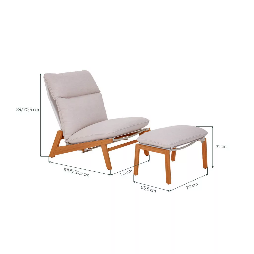 Șezlong de grădină reglabil Kalem cu suport pentru picioare