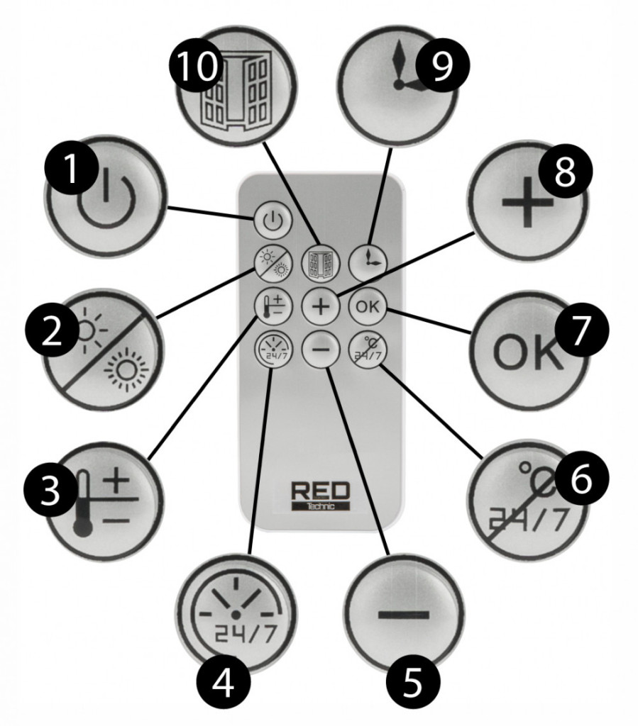 - Buton pentru activarea controlului temperaturii setate prin intermediul butoanelor /-